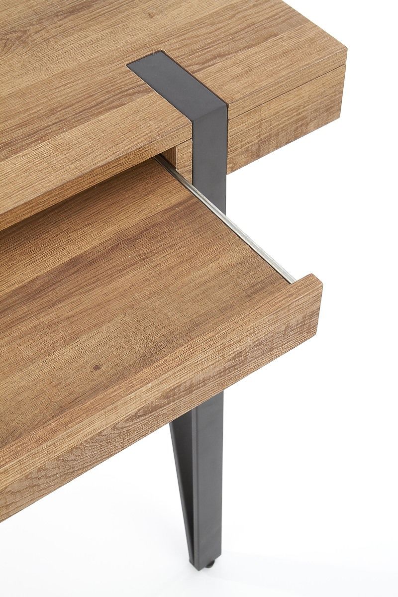 A munkalap laminált MDF lapból készült mézes dió színben. A szerkezet fekete színű porszórt acélból készült.
