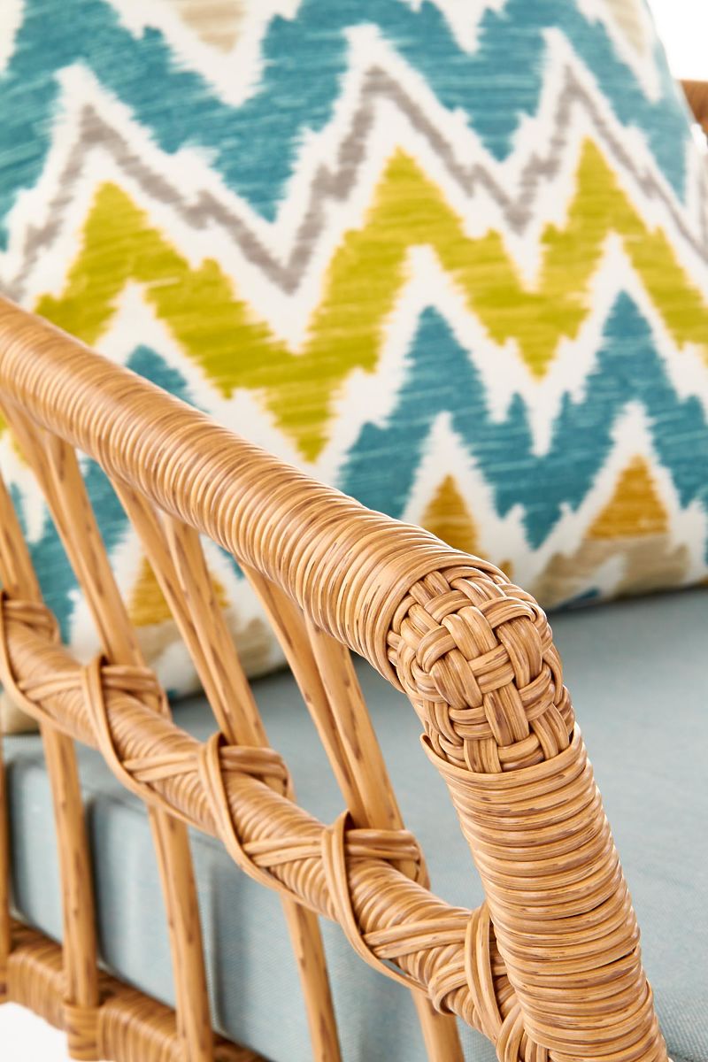 A stabil szerkezetet fekete színű porszórt acél alkotja, amelyet szintetikus rattan fon be. A csomag tartalmaz egy puha textil ülőpárnát és egy színes díszpárnát az Ön kényelme érdekében.