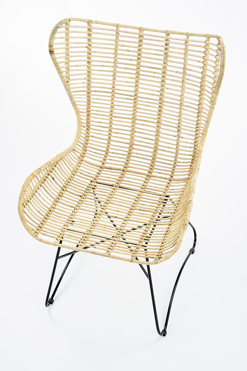 Az ülés és a háttámla természetes rattanból fonott. A szerkezet fekete színű, porszórt acélból készült.