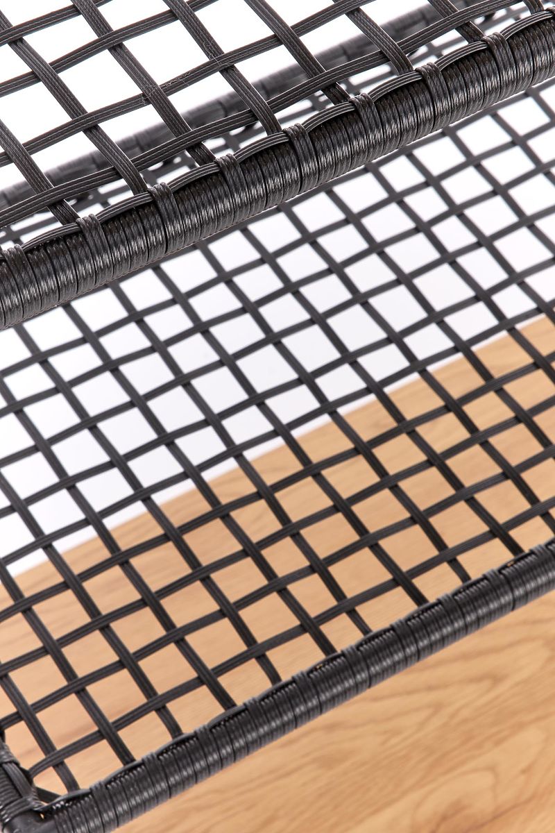A polcok laminált MDF lapból készültek arany tölgy színben és szintetikus rattanból. A szerkezet fekete színű, porszórt acélból készült.