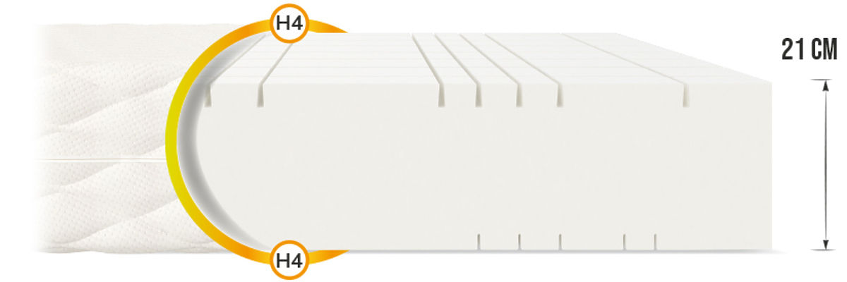 A jó minőségű és kényelmes matrac az egészséges és nyugodt alvás alapja. Ezt a kétoldalas Goya Max matraccal érheti el, melynek magassága 21 cm . A habszivacs matrac 7 zónára van osztva a hosszirányú és keresztirányú vágások sorozatának köszönhetően. Ez a plaszticitás jelentős növekedéséhez vezet, ami kiváló tartást biztosít a gerincnek .