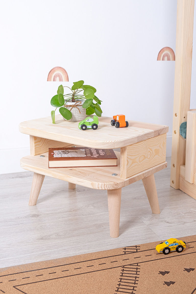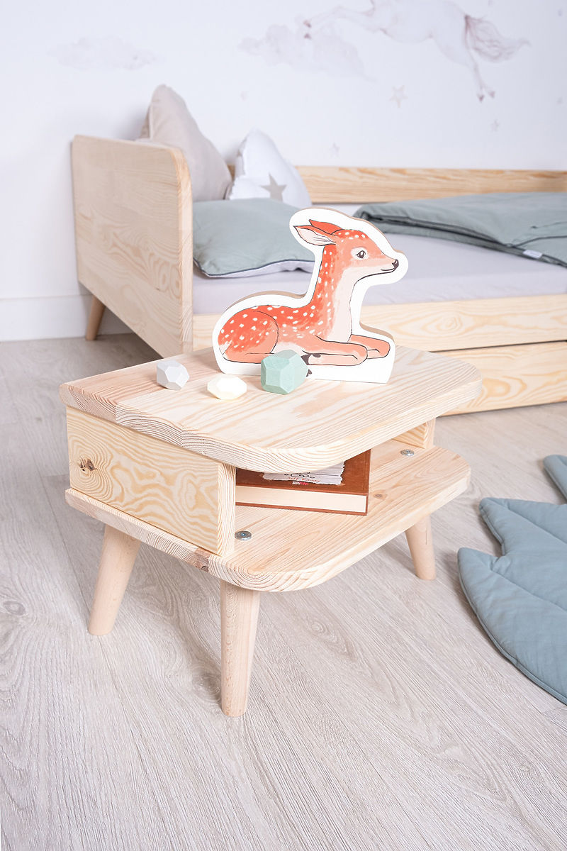 Az Ourbaby NELL kollekció elegáns, kiváló minőségű fenyőfából készült éjjeliszekrénye tökéletes kiegészítője lesz a gyerekszobának. Ez az éjjeliszekrény nem csupán tárolóhelyet kínál. Praktikus tárolópolccal elegendő helyet biztosít könyvek, órák, mobiltelefonok és egyéb személyes tárgyak számára.