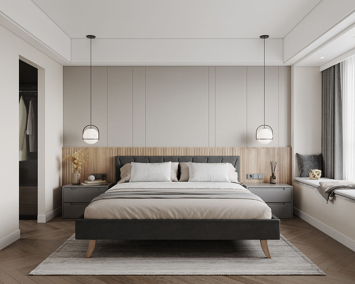 A szürke szín elegáns és időtálló megjelenést kölcsönöz a hálószobának. .. többet