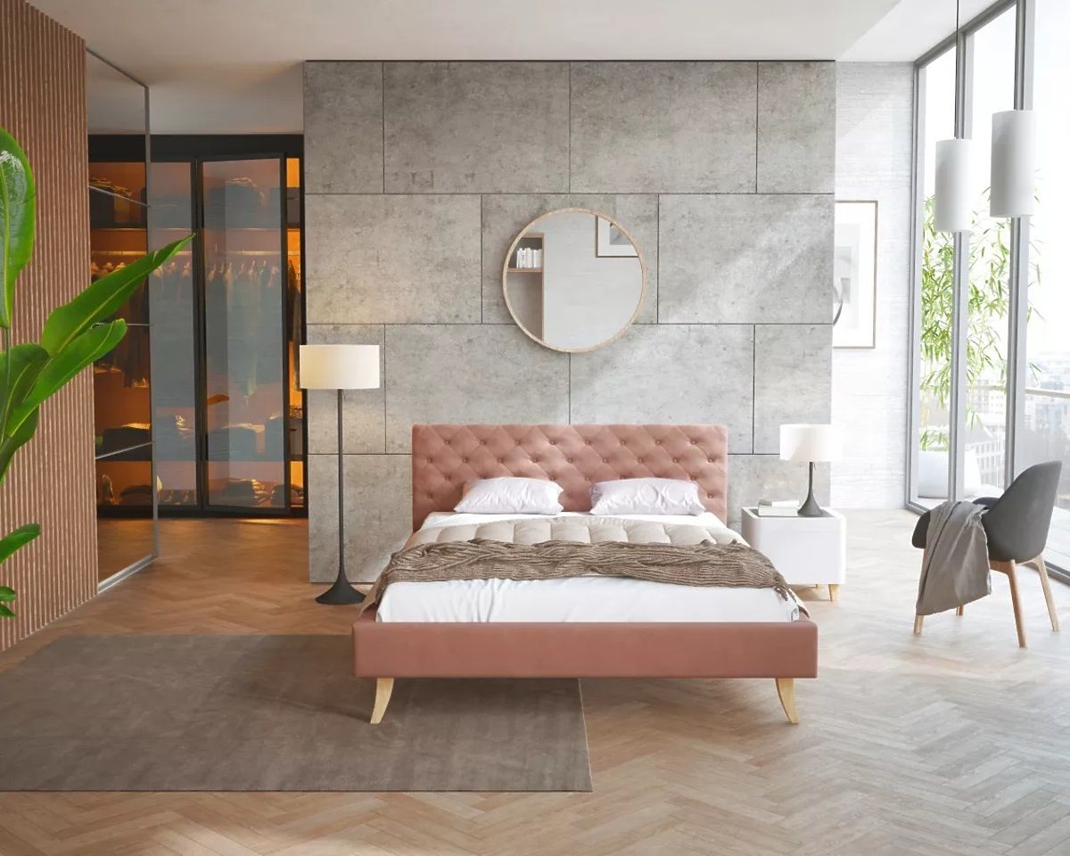 Kárpitozott Kalifornia ágy óarany velúr Trinity szövettel és bükkfa lábakkal. .. többet