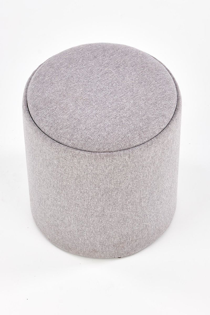 méretek: fi38/45 és fi35/39 cm, 2 darabos puff készlet tárolóhellyel, anyag: szövet / MDF + természetes furnér, szín: világosszürke