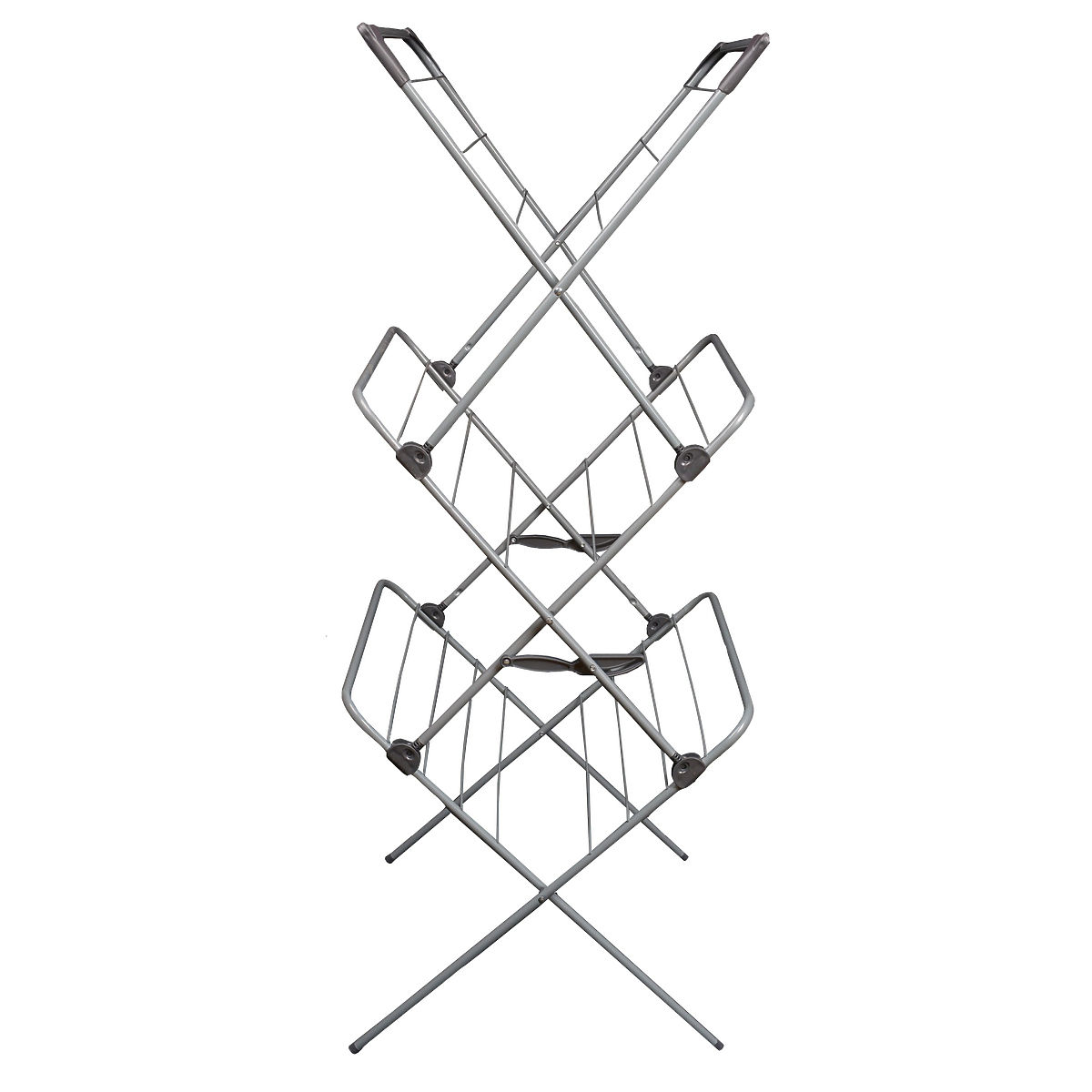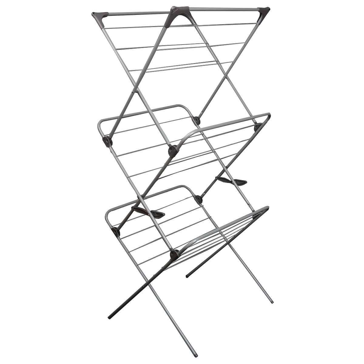 A függőleges szárító helytakarékos megoldás. Kompakt mérete lehetővé teszi, hogy a fürdőkádba és zuhanykabinokba helyezzük. A szárító 3 szintjének köszönhetően kb. 15 méter ruhát lehet felakasztani. A szárító önálló összehajtódás elleni zárral rendelkezik, és zsanérjai fém szegecsekkel vannak rögzítve.