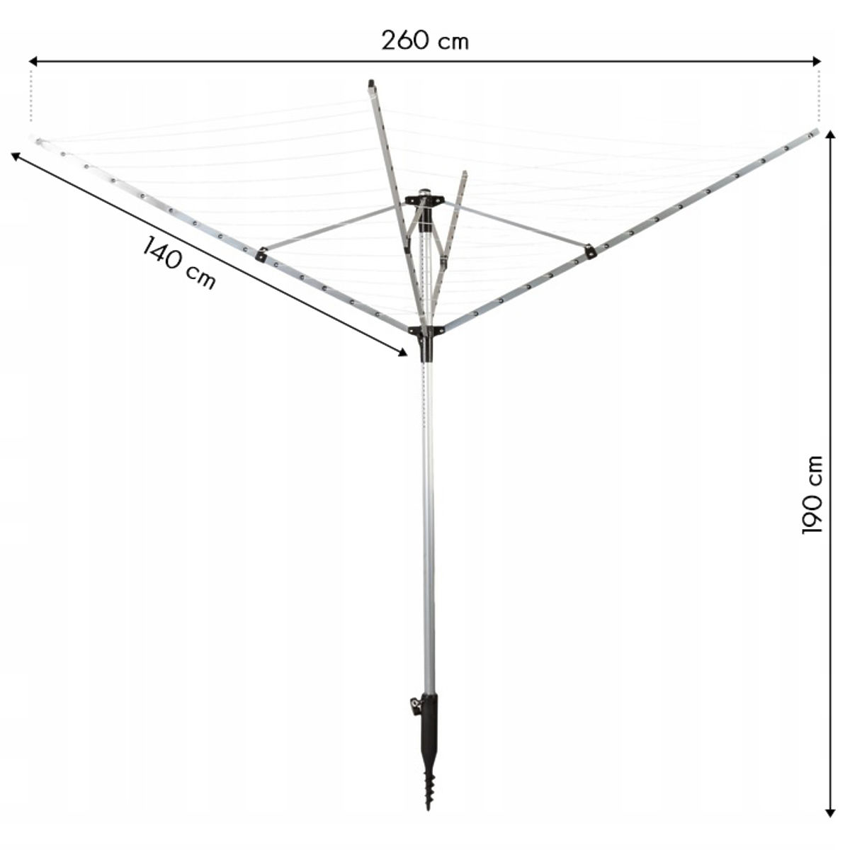 A széles karoknak (140 cm) köszönhetően a szárítófelület elég nagy, hogy könnyedén felakaszthasson nagyobb tárgyakat, mint például ágynemű, lepedők, takarók.