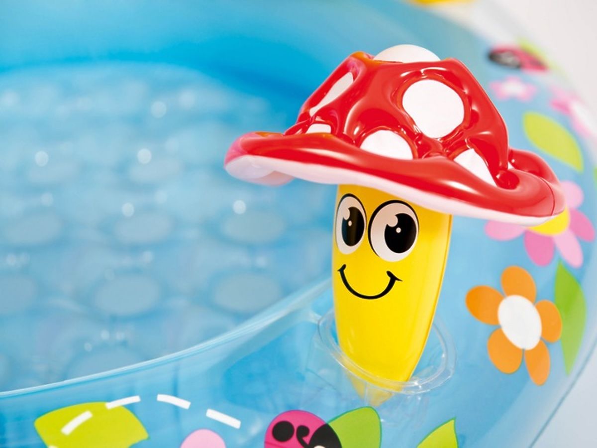 ÁTGONDOLT, BIZTONSÁGOS KIALAKÍTÁSA medence tartós PVC anyagból készült, amelynek rugalmassága garantálja a sérülésállóságot és a biztonságos játékot. A kalapos tető védi a gyermeket a napsugaraktól és árnyékot biztosít. A puha aljzat kényelmet nyújt a játék során és védi a gyermeket az esésektől.