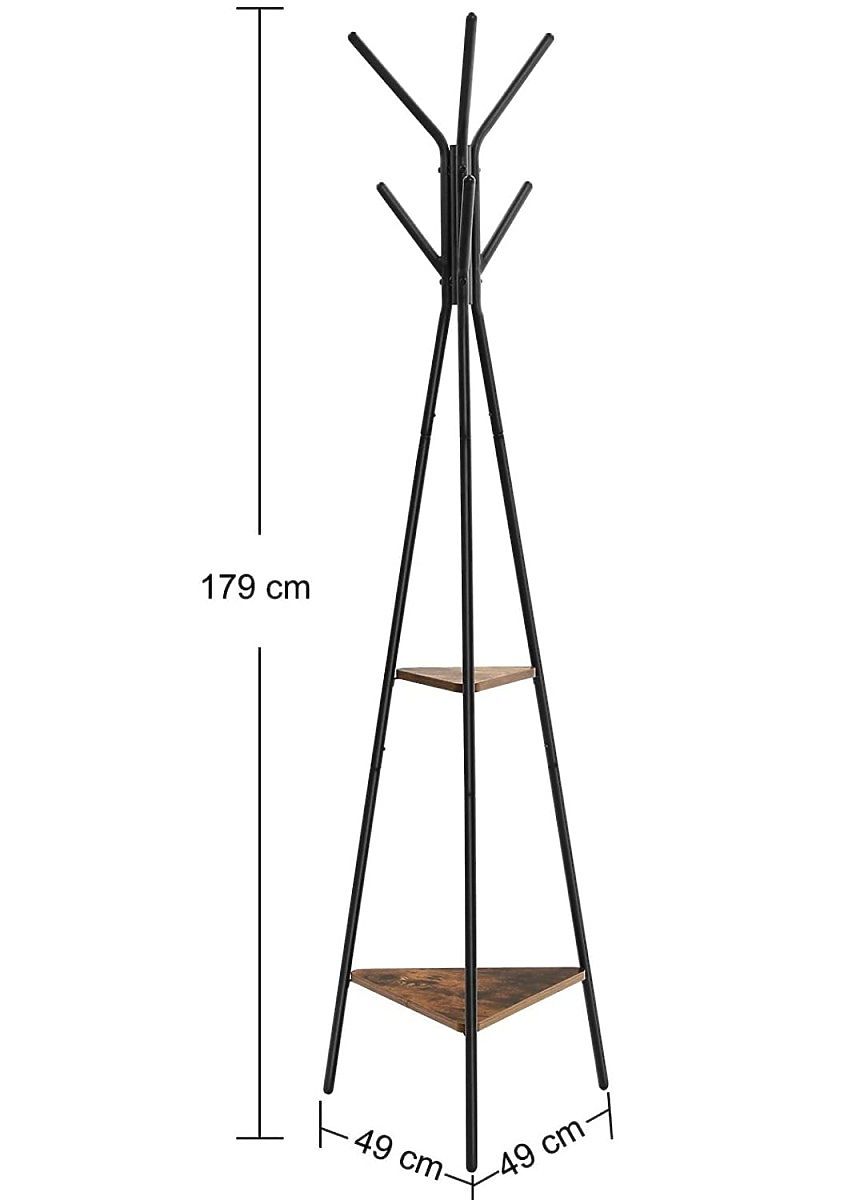 Ez a termék kevés helyet foglal, és stabil háromszög alapja van, amely biztosítja, hogy a termék ne dőljön meg további terhelés esetén. Ezenkívül a termék 6 lekerekített akasztóval van felszerelve kabátok, dzsekik, táskák vagy sálak és sapkák felakasztására.