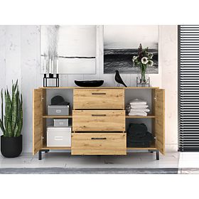 A Nevio kollekció stílusos komódja egy praktikus és elegáns bútor, amely tökéletesen illeszkedik a modern és a hagyományos enteriőrbe. A tölgyfa dekor kellemes, .. többet
