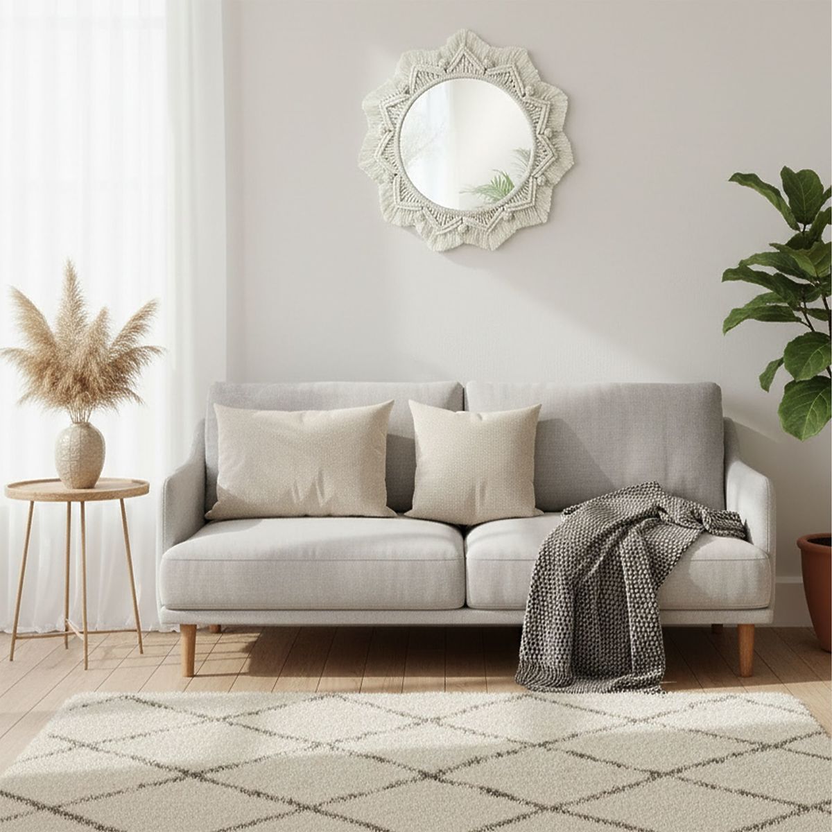 A Boho tükör tökéletes kiegészítője azoknak a belső tereknek, amelyek természetes, laza és kreatív légkört sugároznak. Egyedi, bohém stílus által inspirált dizájnjával ez a tükör remekül illik hálószobákba, nappalikba vagy előszobákba. A tükör kézzel szőtt kerete kiváló minőségű természetes rostokból készül, és stílusos módot kínál a falak díszítésére, egyediséget és személyes jelleget hozva az otthonába.