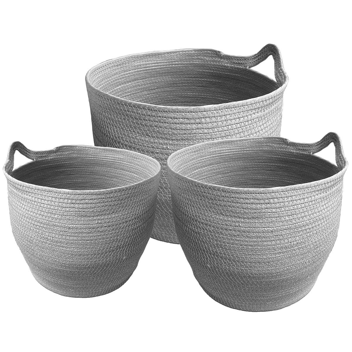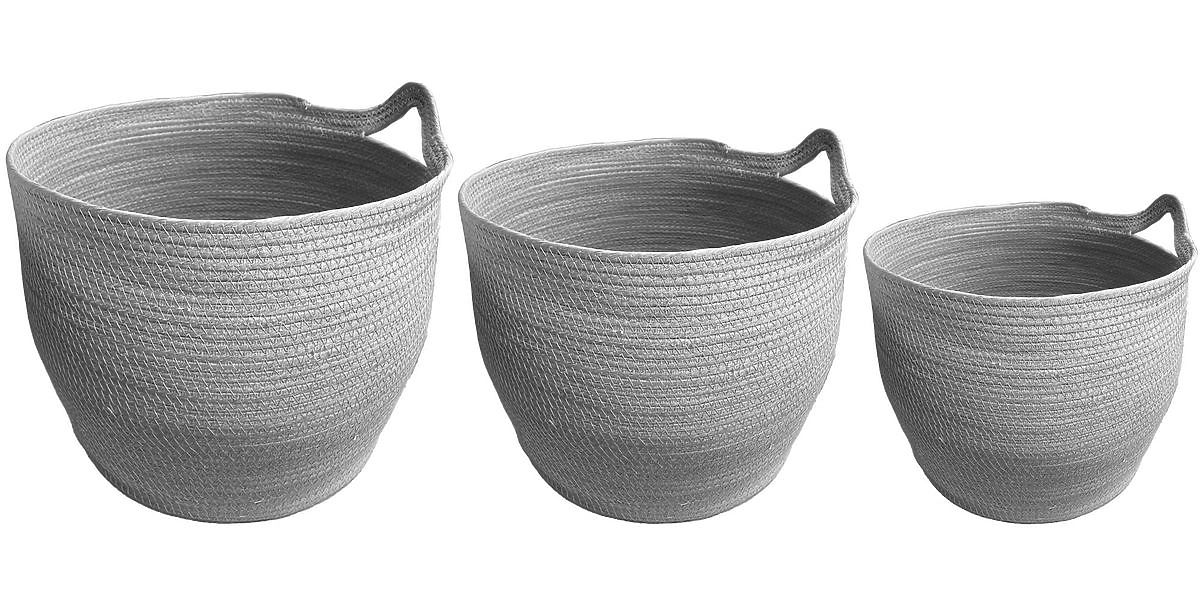 Három darabos, kézzel fonott szürke BOHO kosár készlet. .. többet