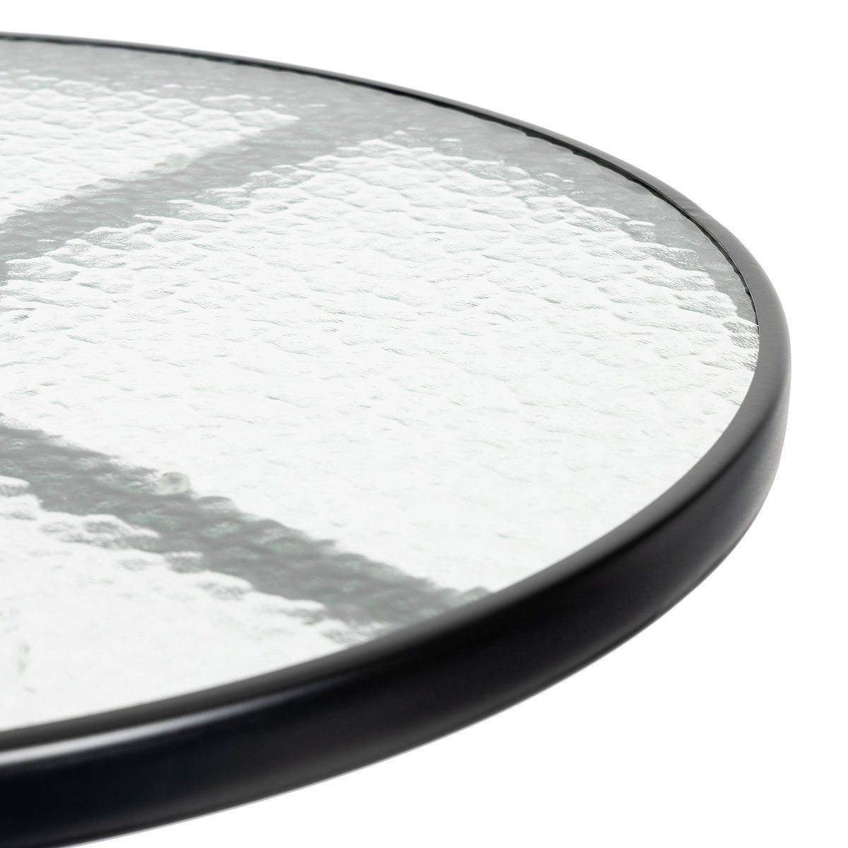 Az asztal szerkezete tartós acél elemekből készült, amelyek az asztal lábait alkotják. Az egész porszórt festéssel van bevonva, ami időjárásállóvá teszi az asztalt. Az asztallapon és a lábak összekötő elemein található speciális lyukaknak köszönhetően felszerelheti a szetthez mellékelt napernyőt (lyuk átmérője: 2,5 cm) vagy használhatja saját modelljét.