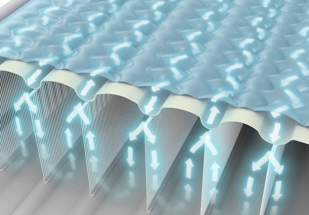 DURA-BEAMAz alvás során fontos a test helyzete, ha helytelen, már ébredés után fájdalmat érzünk. Az ebben a modellben alkalmazott technológia lehetővé teszi a fájdalom elkerülését még hosszú alvás után is. A speciális szerkezetű kamrák és a hullámos fekvőfelület biztosítják a gerinc megfelelő helyzetét, a matrac egyenletesen osztja el a súlyt az egész szélességben.