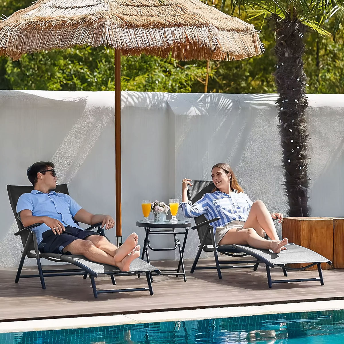 Lukahome.hu » Kerti bútorok / Kerti nyugágyak / Összecsukható kerti strandnyugágy állítható háttámlával, acél szerkezet, szürke MultiGarden