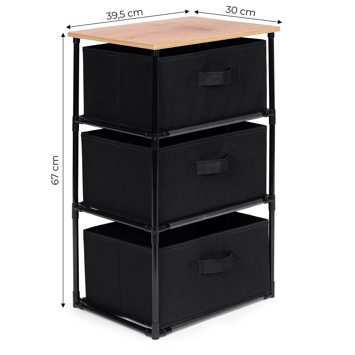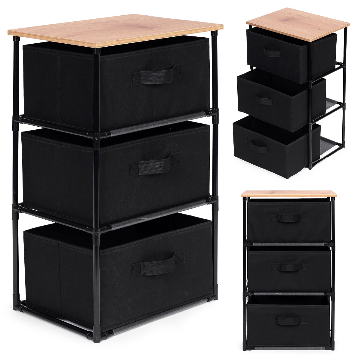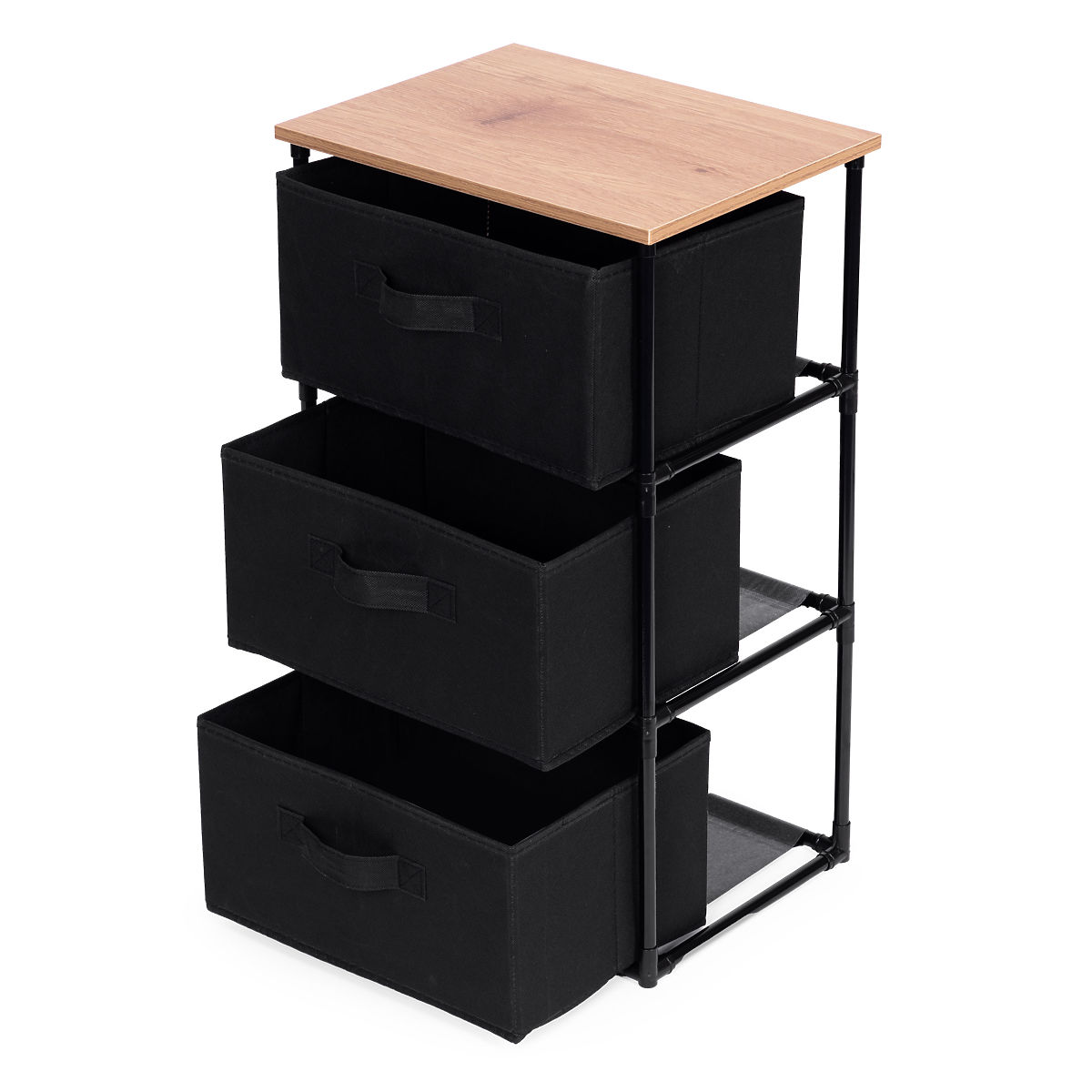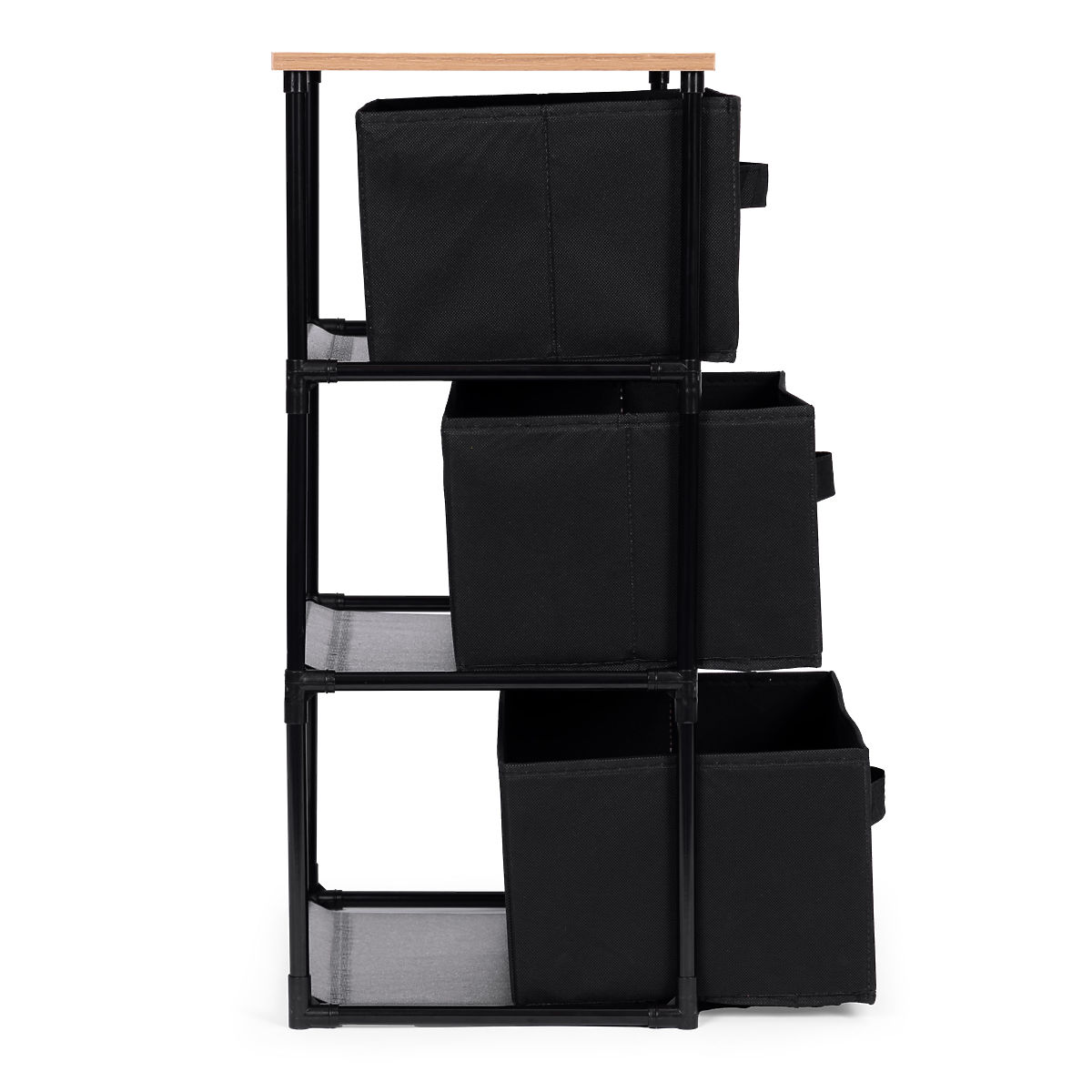 Lukahome.hu » Fürdőszoba és WC / Fürdőszobai kiegészítők / Textil szekrény polc szervező kivehető kosarakkal, 3 szintes loft fekete ModernHome