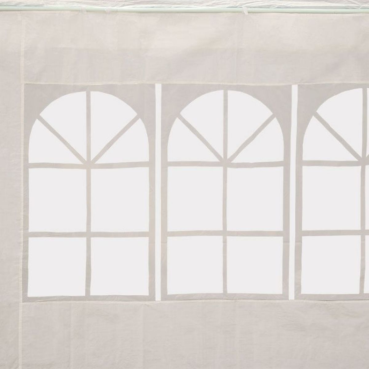 TARTÓS SZERKEZETA sátor váza erős, porfestett fémcsövekből készült, 32/25/25 mm átmérővel, ami biztosítja a stabilitást és a korrózióállóságot. A szilárd szerkezet tartósságot garantál még intenzív használat esetén is. A sátor minden lába cövekekkel van rögzítve a földhöz, ami növeli a stabilitását. A tető és a falak tartós, időjárásálló polietilénből készültek, 100 g/m2 súlyúak, elegáns fehér színben.