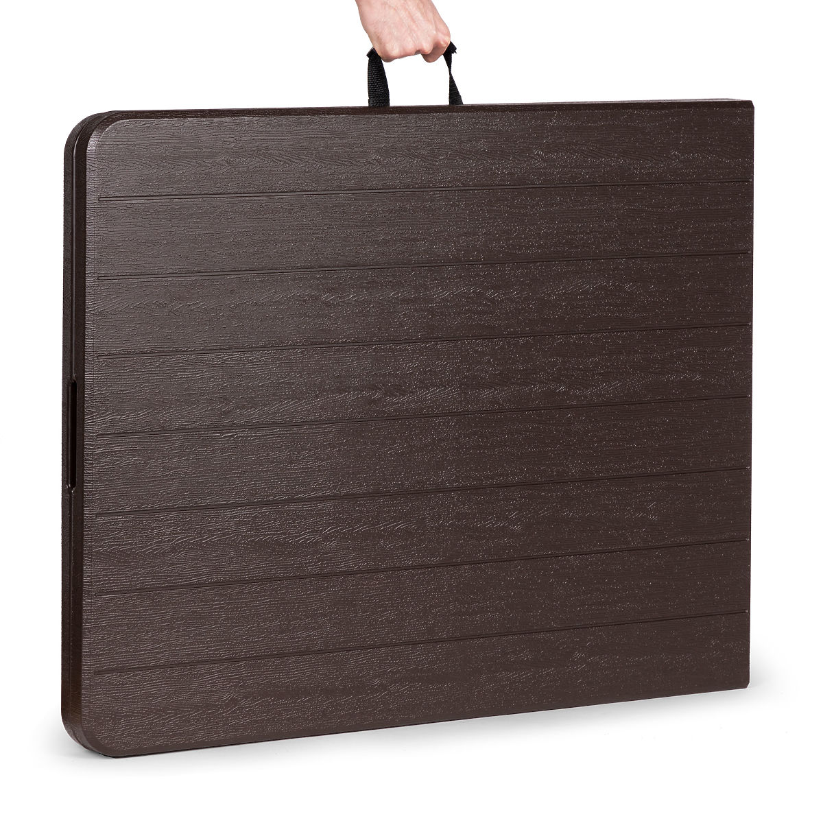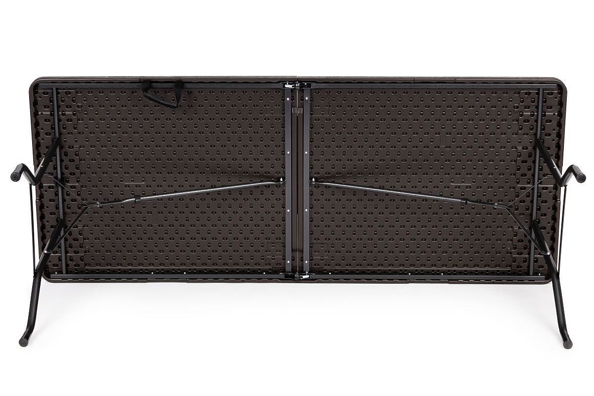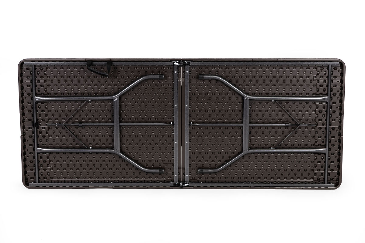 KÉNYELMES ÖSSZECSUKÁSI RENDSZERA speciális összecsukási rendszernek köszönhetően az asztal bőrönddé hajtható össze, ami mindössze 20 másodpercet vesz igénybe. Ez a funkció lehetővé teszi az asztal könnyű tárolását, és utazáskor, valamint piknikek során is hasznos lehet.