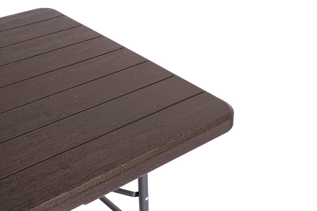 Az asztallap erős HDPE anyagból készült, amely ellenáll minden időjárási körülménynek. Az asztallap megjelenése a fa textúráját idézi, ami további dekoratív szerepet tölt be. Az asztallap nagyon könnyen karbantartható és nem koszolódik.