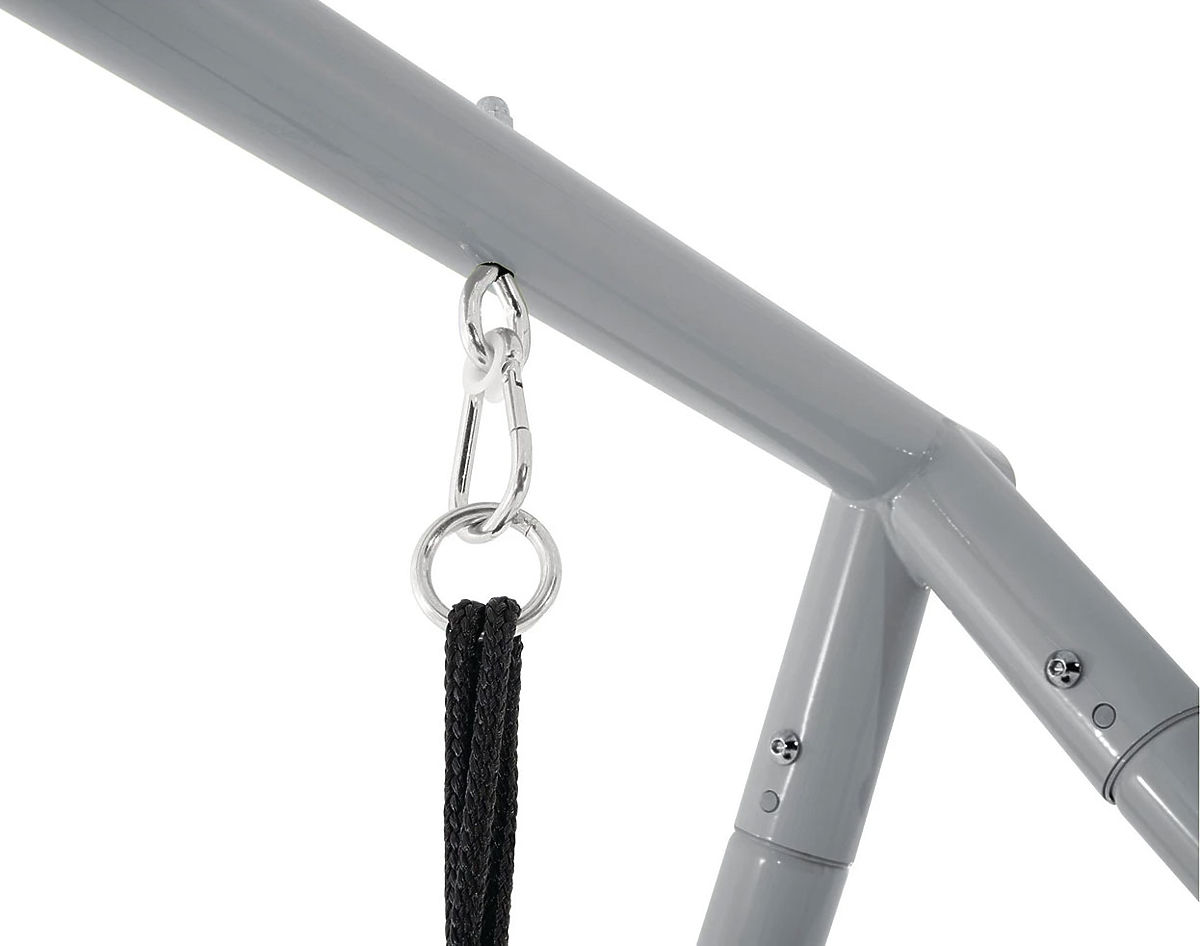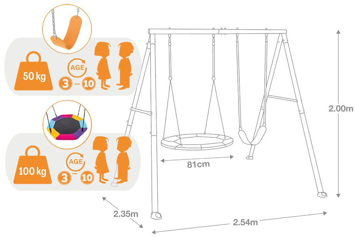BIZTONSÁG ÉS MINŐSÉGA 0,60 mm átmérőjű és 0,09 mm vastag fémcsövekből készült szilárd szerkezet megbízható stabilitást és hosszú élettartamot biztosít – még napi, intenzív kerti használat esetén is. További rögzítő cövekek hatékonyan védik az egészet az elmozdulástól, garantálva a maximális biztonságot játék közben. Ez a megoldás nyugalmat hoz a szülőknek és még több örömöt a gyerekeknek.