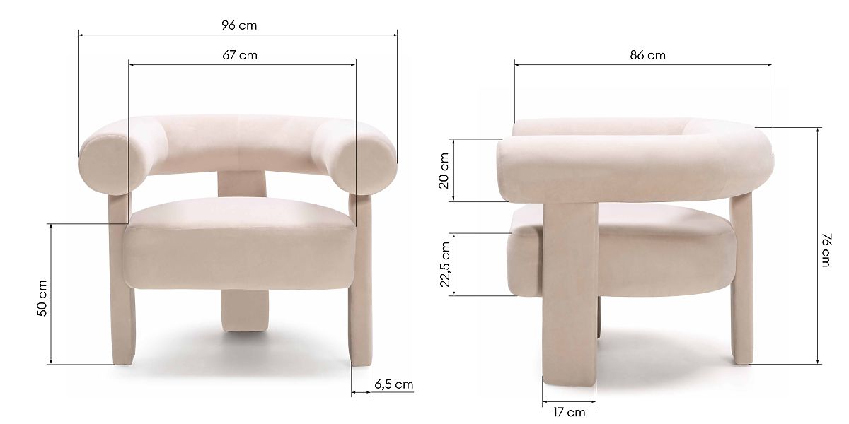 Lukafurniture.hu » Fotelek és ülés / Fotelek / Hella világos bézs, bársonyos, lekerekített relaxációs fotel