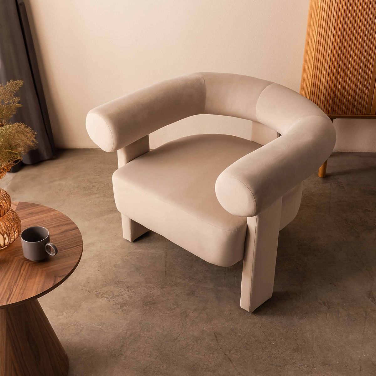 Lekerekített formájú, bársonyos relaxációs fotel. .. többet