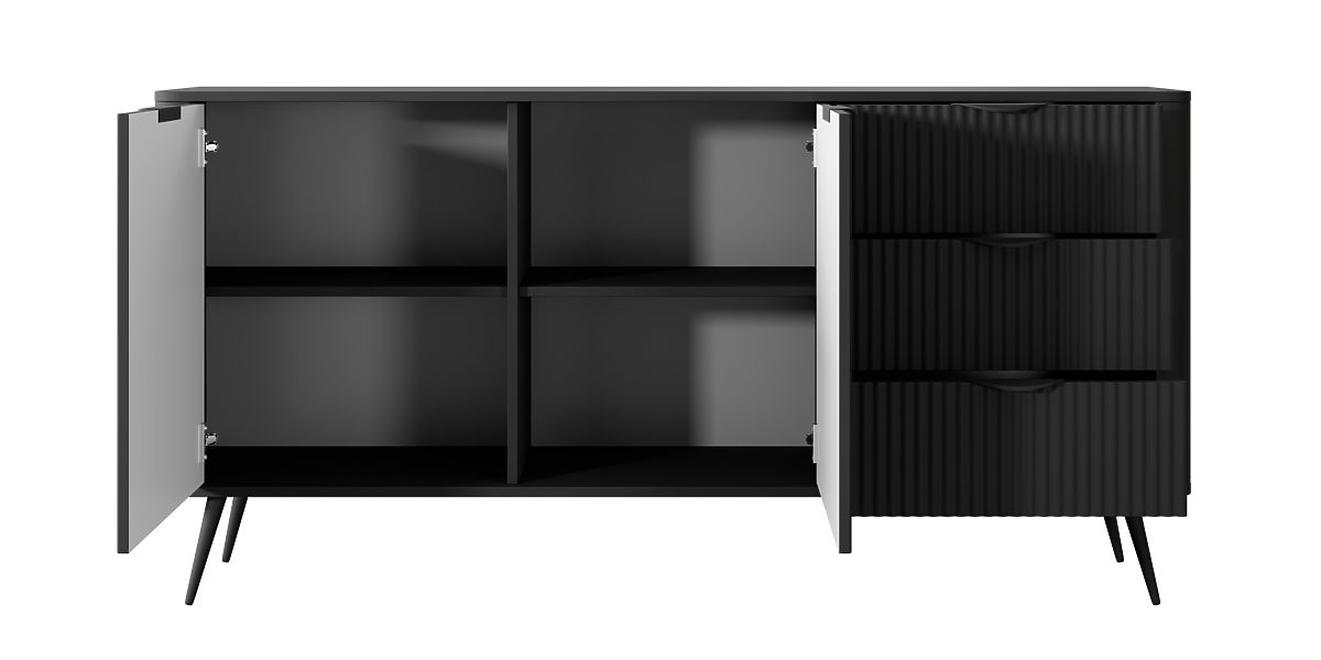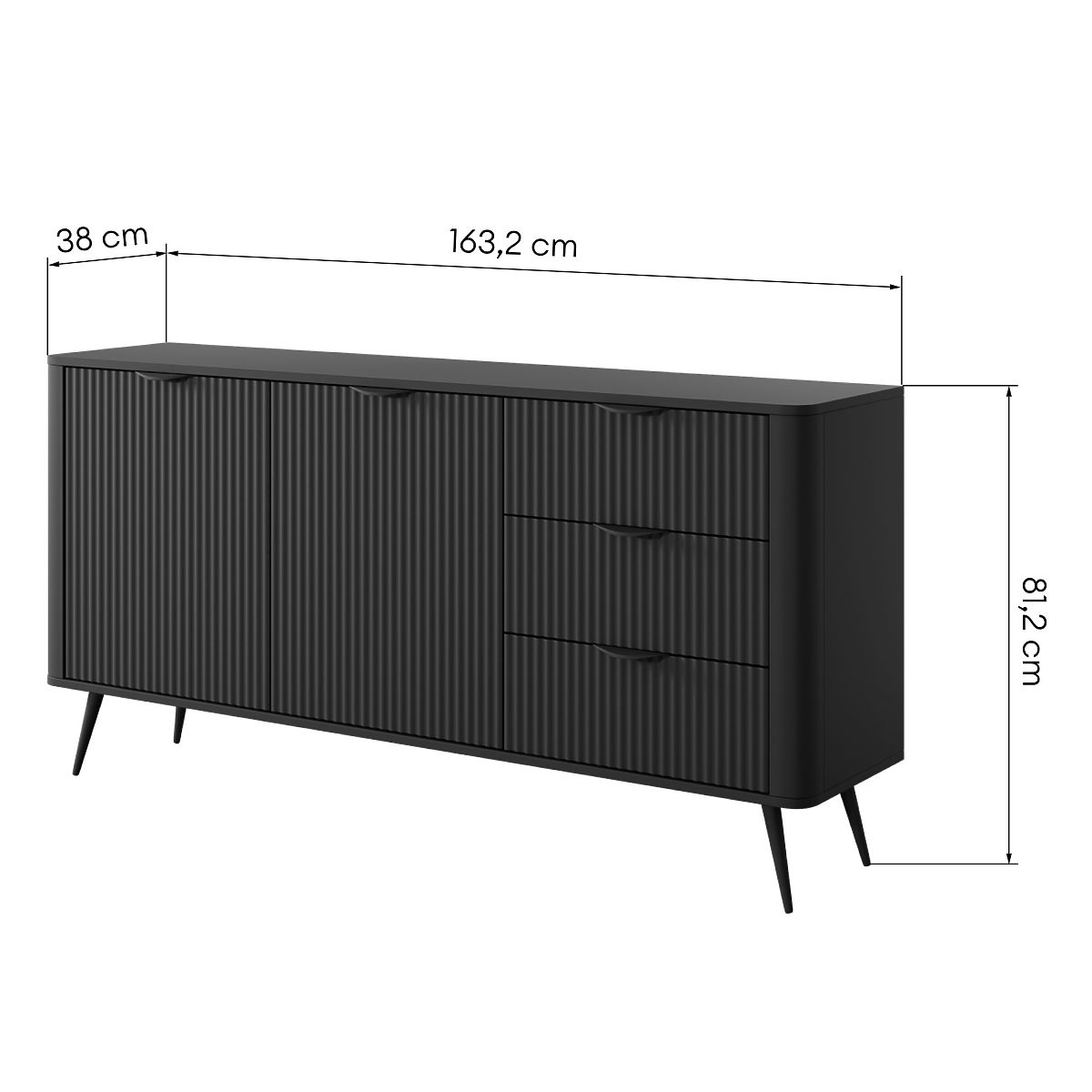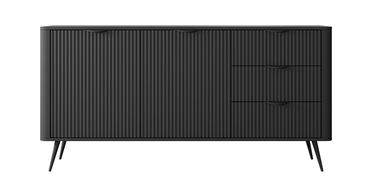 Lukafurniture.hu » Do itthon / élő szoba / Komódok / Kétszárnyú komód fiókokkal Lante fekete, bordázott, lekerekített