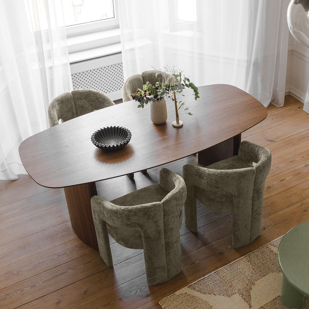 A puha, zöld kárpitszövet különleges bájt ad a Castelo széknek, és otthonossá teszi a belső teret. Finom, de kifejező színe biztosítja, hogy a szék különböző elrendezésekhez illeszkedjen. Válassza a Castelo széket - a tökéletes bútordarabot az étkezőbe, amely kényelmet és eleganciát biztosít a közös családi étkezések során.