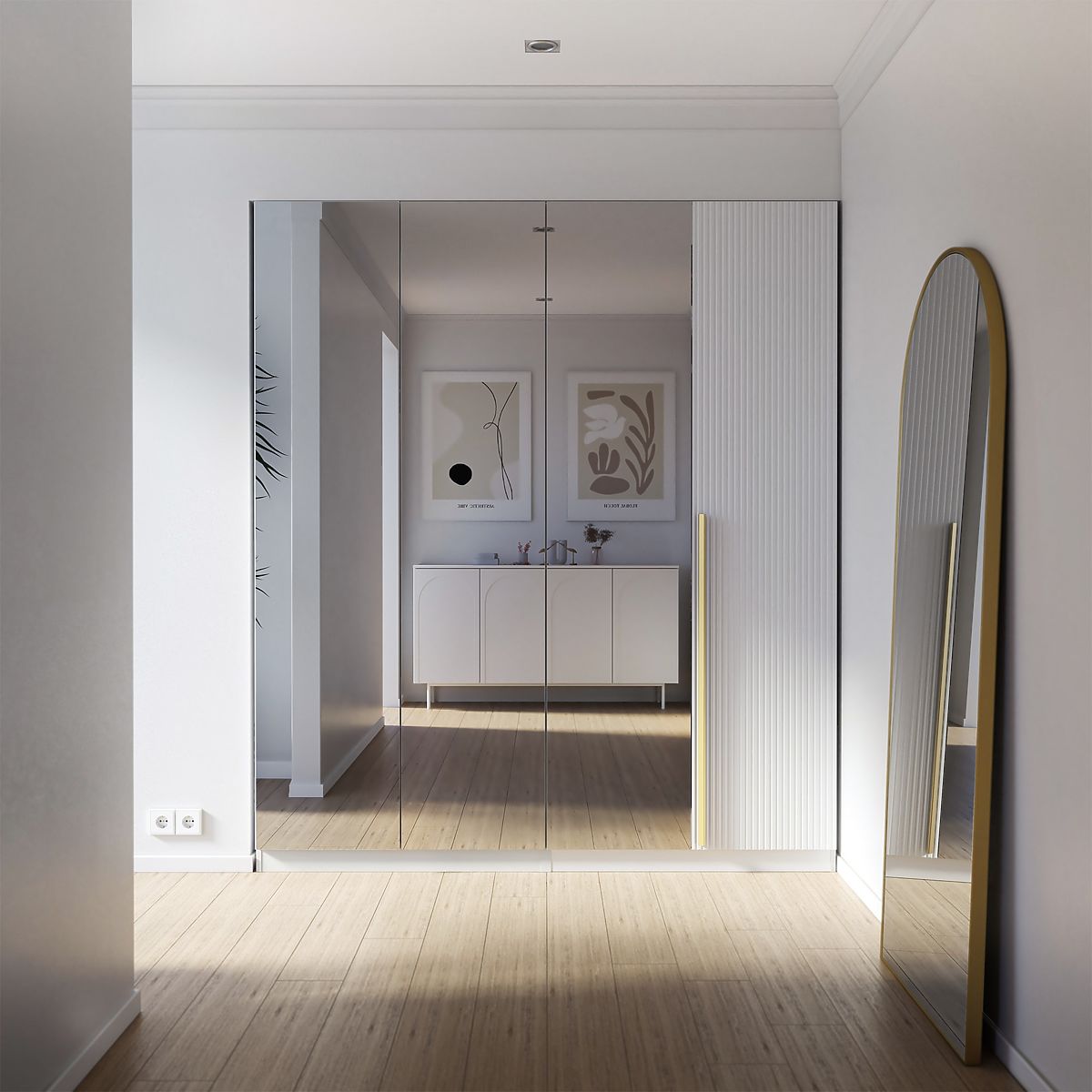 Négyajtós Neroli szekrény tükörrel és dekoratív vájatokkal. .. többet