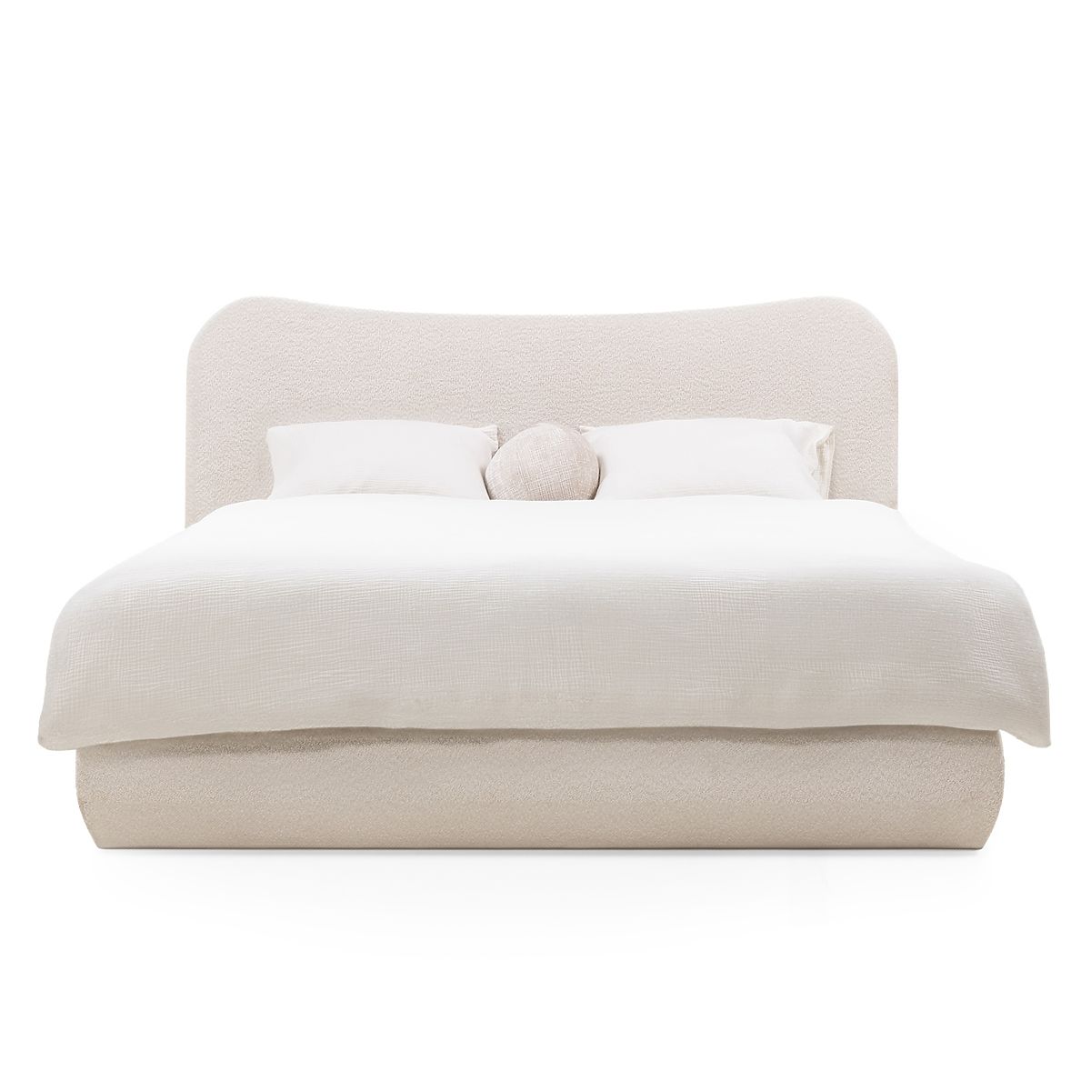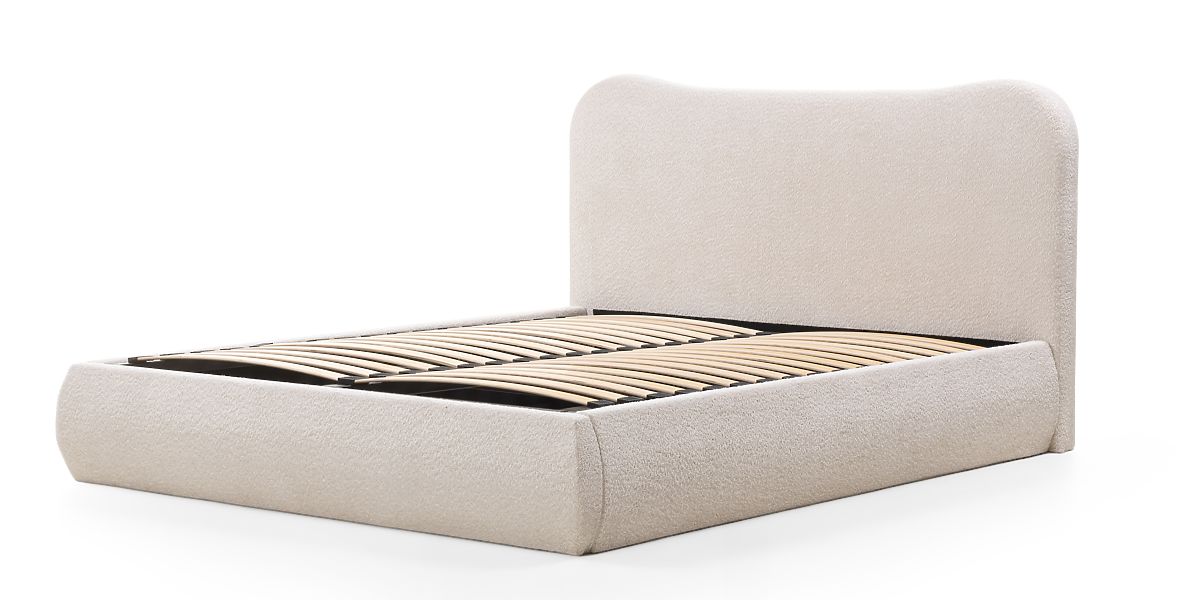 Lukahome.hu » Ágyak / Franciaágy / Ágyak 160x200 / Kárpitozott Derry ágy 160x200 cm, ráccsal és tárolóval, lekerekített, bézs