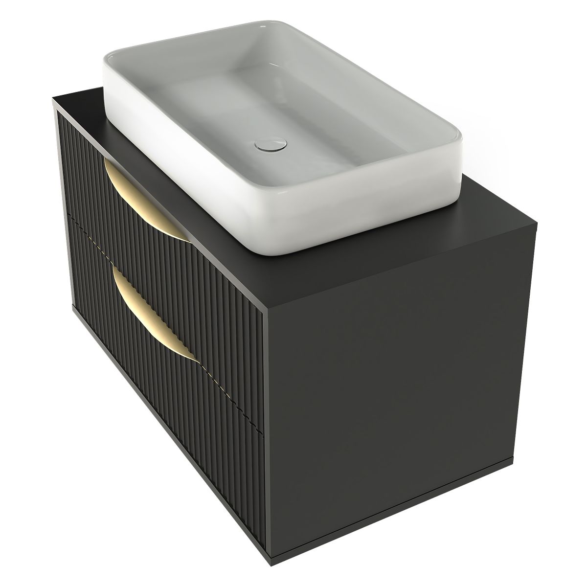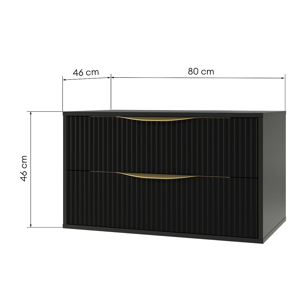 Lukafurniture.hu » Fürdőszoba és WC / Fürdőszobák szekrények / Avila 2.0 mosdó alatti szekrény, 80 cm, bordázott, arany fogantyúk, fekete