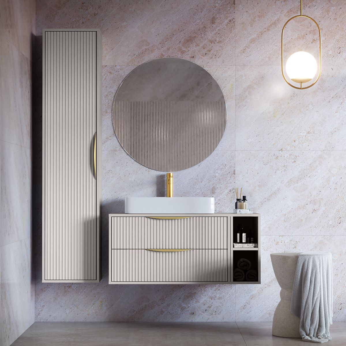 Lukafurniture.hu » Do itthon / Fürdőszoba / Fürdőszobák szekrények / Avila 2.0 mosdó alatti szekrény, 80 cm, bordázott, arany fogantyúk, kasmír