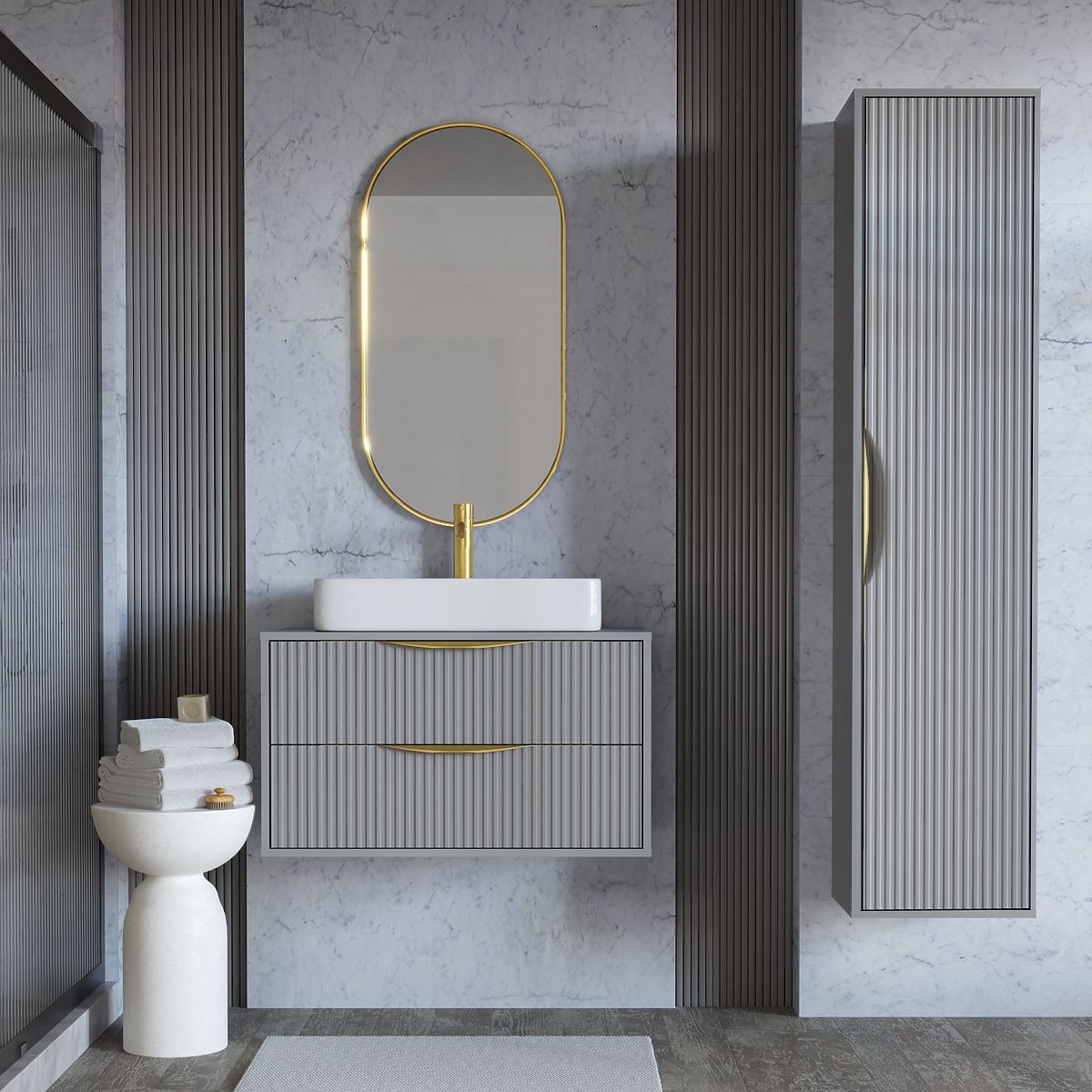 Lukafurniture.hu » Do itthon / Fürdőszoba / Fürdőszobák szekrények / Avila 2.0 mosdó alatti szekrény, 80 cm, bordázott, arany fogantyúk, szürke