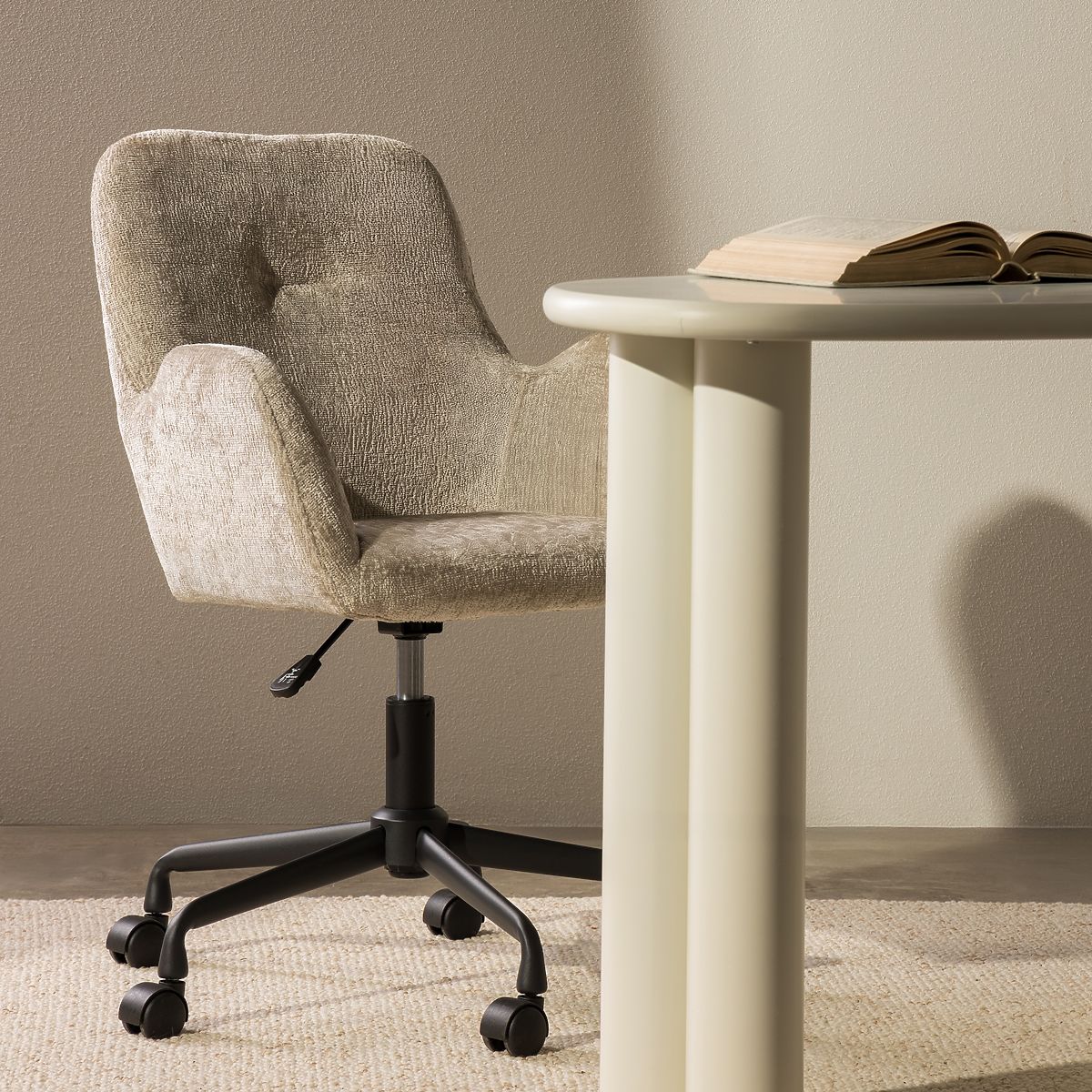 A Miguel forgószék ötvözi a modern dizájnt a kényelemmel, puha ülőfelületet és háttámlát kínál, amely kellemes tapintású anyaggal van bevonva. Egyszerű formája biztosítja, hogy bármely belső térbe illeszkedjen, eleganciát és kényelmet hozva. Az ergonomikus kartámaszok kényelmet nyújtanak, a kerekes alap pedig könnyű mozgást tesz lehetővé. A szék ideális mind irodába, mind otthoni dolgozószobába, ötvözve a funkcionalitást az esztétikával. A Miguel tökéletes megoldás azok számára, akik értékelik a kényelmet és a stílust. Ennek köszönhetően minden asztalnál töltött pillanat örömmé válik. Praktikus és elegáns kiegészítője a belső térnek.