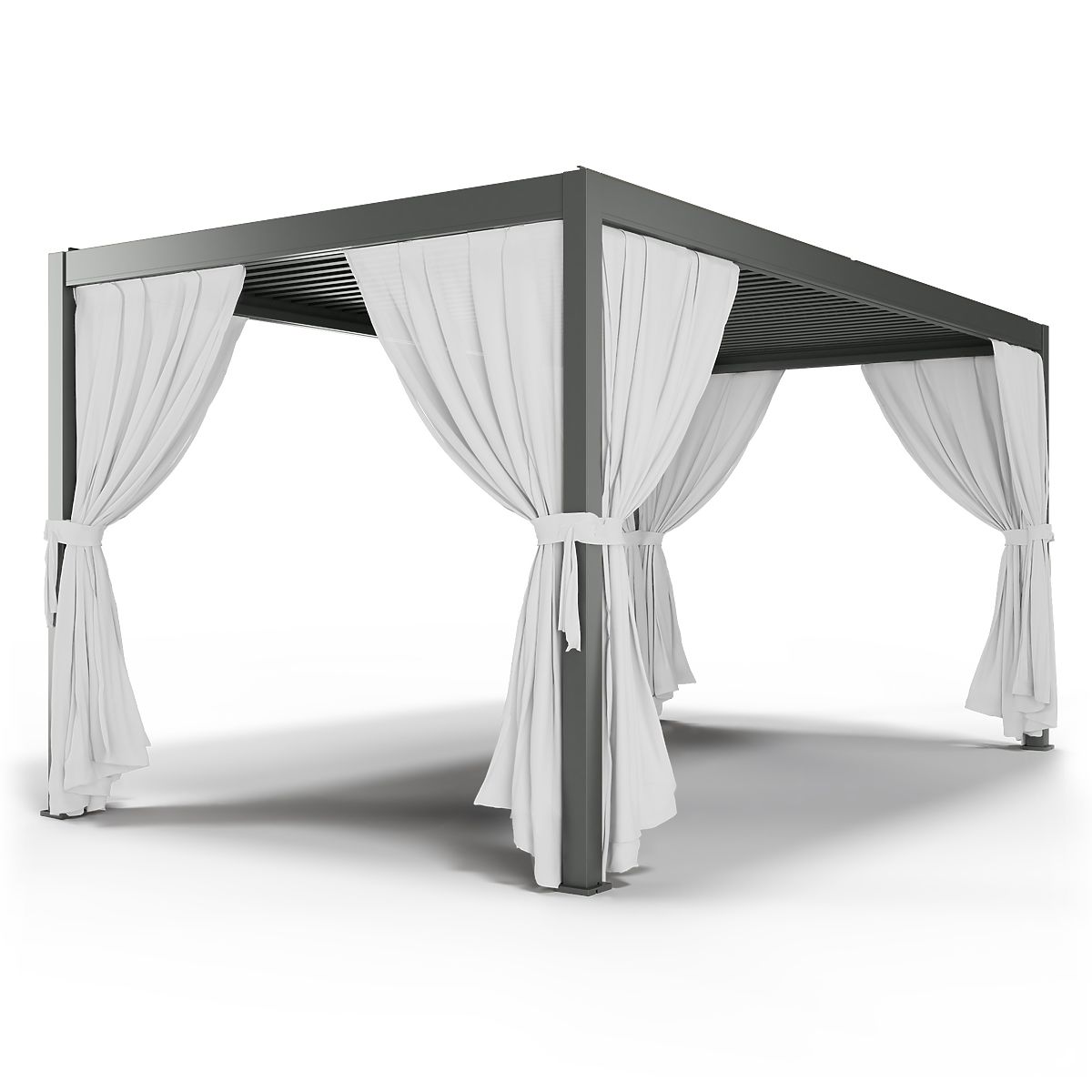 Az Antilla pergola függöny ideális megoldás a kényelem és elegancia érdekében a kertjében. Könnyen tisztítható és tartós poliészter anyagból, terylenből készült, nemcsak eleganciát kölcsönöz, hanem a könnyedség és szabadság légkörét is megteremti. A függöny véd a káros UV-sugárzástól, enyhe esőtől és széltől, miközben kellemes árnyékolást és magánszférát biztosít. A függöny a 495 cm széles pergola falára szerelhető. A függönyök a pergola tartógerendájához csavarokkal rögzített sínre vannak szerelve.
