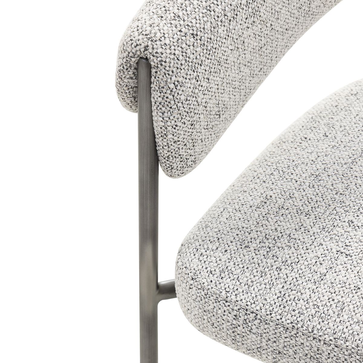 A kárpitozott Portia szék az elegancia és a kényelem modern stílusú kombinációja. Lekerekített formái finomságot kölcsönöznek, a puha, szürke szövetből készült kárpit pedig különleges karaktert ad az egésznek. A szürke árnyalatú fém szerkezet tartósságot és stabilitást biztosít, így a szék mindennapi használatra is kiváló választás. A magas minőségű habbal töltött ülés kényelmet garantál még hosszabb ülés esetén is. A Portia remekül illik az étkezőbe, nappaliba vagy egy elegáns irodába, ahol stílusos, modern hangsúlyt ad a térnek. Ez a szék a funkcionalitást és az esztétikát ötvözi, időtlen dizájnt hozva az enteriőrbe.