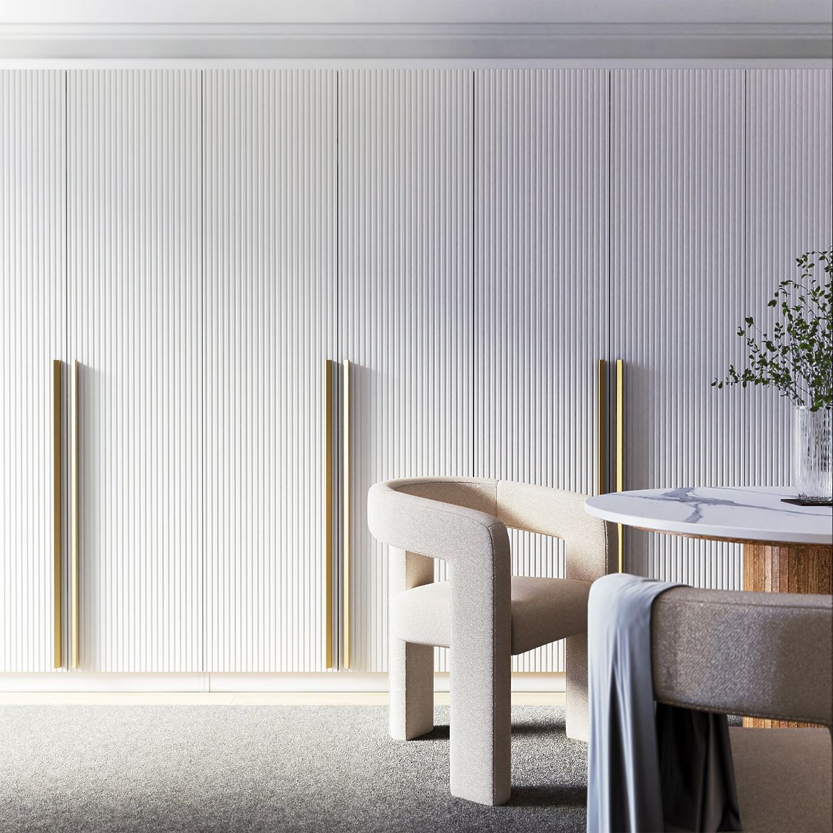 A Neroli szekrényajtó lehetővé teszi, hogy a szekrényt tökéletesen a saját stílusához igazítsa. Dekoratív hornyai egyedi jelleget kölcsönöznek, finom és hatásos mintát hozva létre. Ezenkívül a push to open nyitórendszer gyors és kényelmes hozzáférést biztosít a belső térhez - elég enyhén megnyomni, és a szekrény kinyílik. Azok számára, akik további eleganciára vágynak, arany fogantyút kínálunk, amely különleges fényt ad az egésznek.