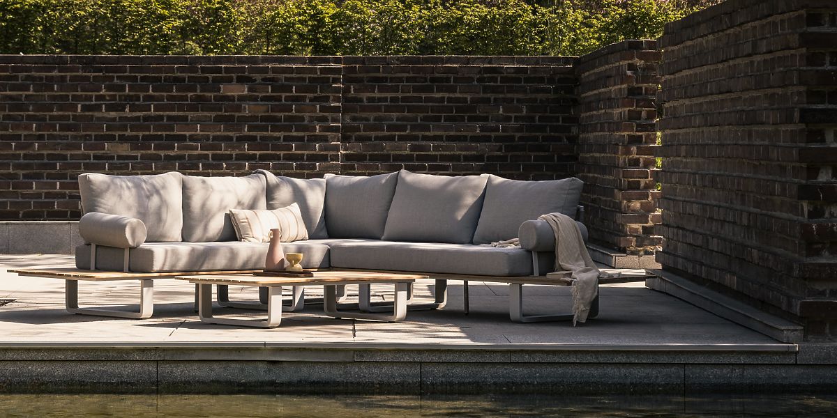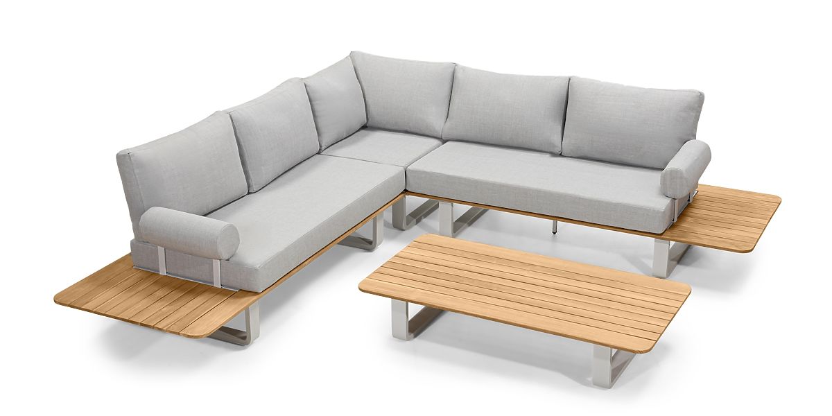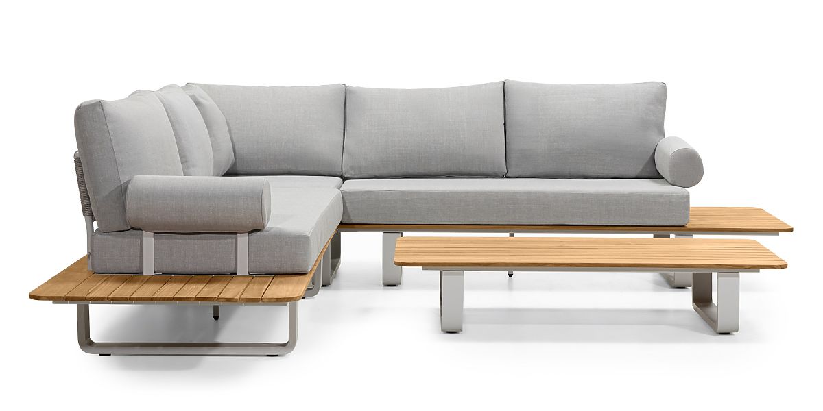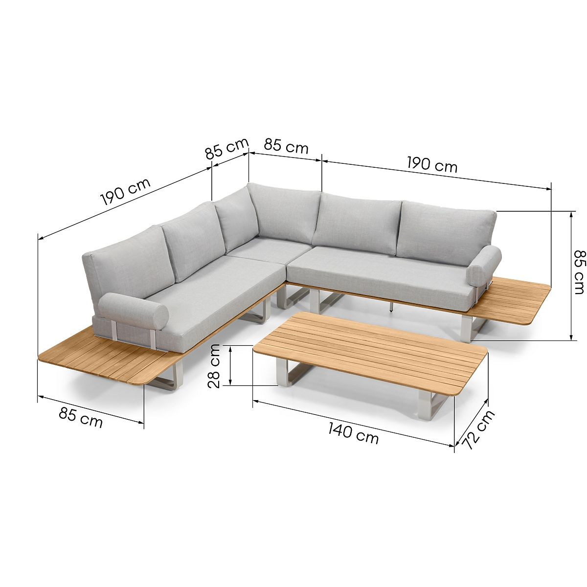 San Piero kerti sarok ülőgarnitúra asztallal, teak FSC fa, szürke/természetes