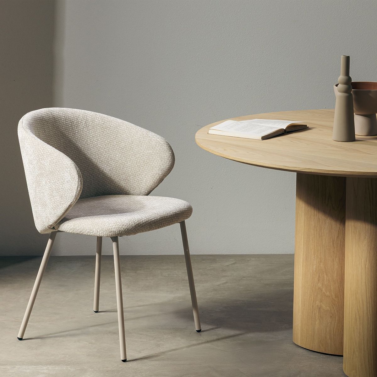 Az Adrano szék remekül illik különféle elrendezésekhez, egyedi bájt kölcsönözve nekik. Világos bézs kárpitozása harmonikusan illeszkedik a bézs színű fém lábakhoz, kiemelve a bútor elegáns jellegét. A kényelmes ülés és a lekerekített háttámla, amely praktikus kartámaszokba megy át, kivételes kényelmet biztosít használat közben. Az Adrano székkel a reggeli kávé új ízt kap, és a családi összejövetelek még kellemesebbek lesznek. Hívja meg otthonába még ma, és élvezze a tökéletes stílust és a kivételes pillanatokat a belső terében!
