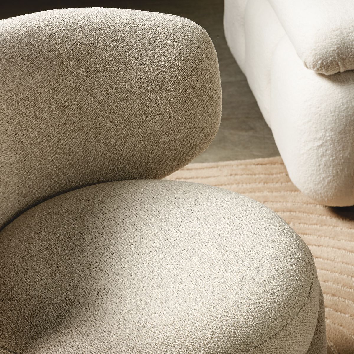 Lukafurniture.hu » Fotelek és ülés / Fotelek / Elaine kárpitozott fotel bézs, boucle, lekerekített formák