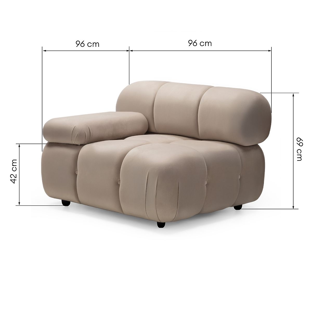 A Fluf Big modul modern dizájnjával és kellemes bársony szövetborításával pihenésre és kikapcsolódásra csábít. A bútor önálló használatával vagy más modulokkal kombinálva szabadon alakíthatja ki saját, személyre szabott összeállítását, amely minden háztartás tagjának igényeihez és preferenciáihoz igazodik. A Fluf Big mély tűzésekkel díszített, amelyek egyedi bájt és eleganciát kölcsönöznek. A tűzés nemcsak magas kényelmet biztosít, hanem egy kis meleget és otthonosságot is hoz a belső térbe. A szilikon végződésű lábak használatának köszönhetően a modul nem fog elmozdulni vagy karcolásokat okozni a padlón. Élvezze a megújult nappali berendezését, és hagyja magát meglepni a Fluf Big csodálatos rugalmasságával már ma!