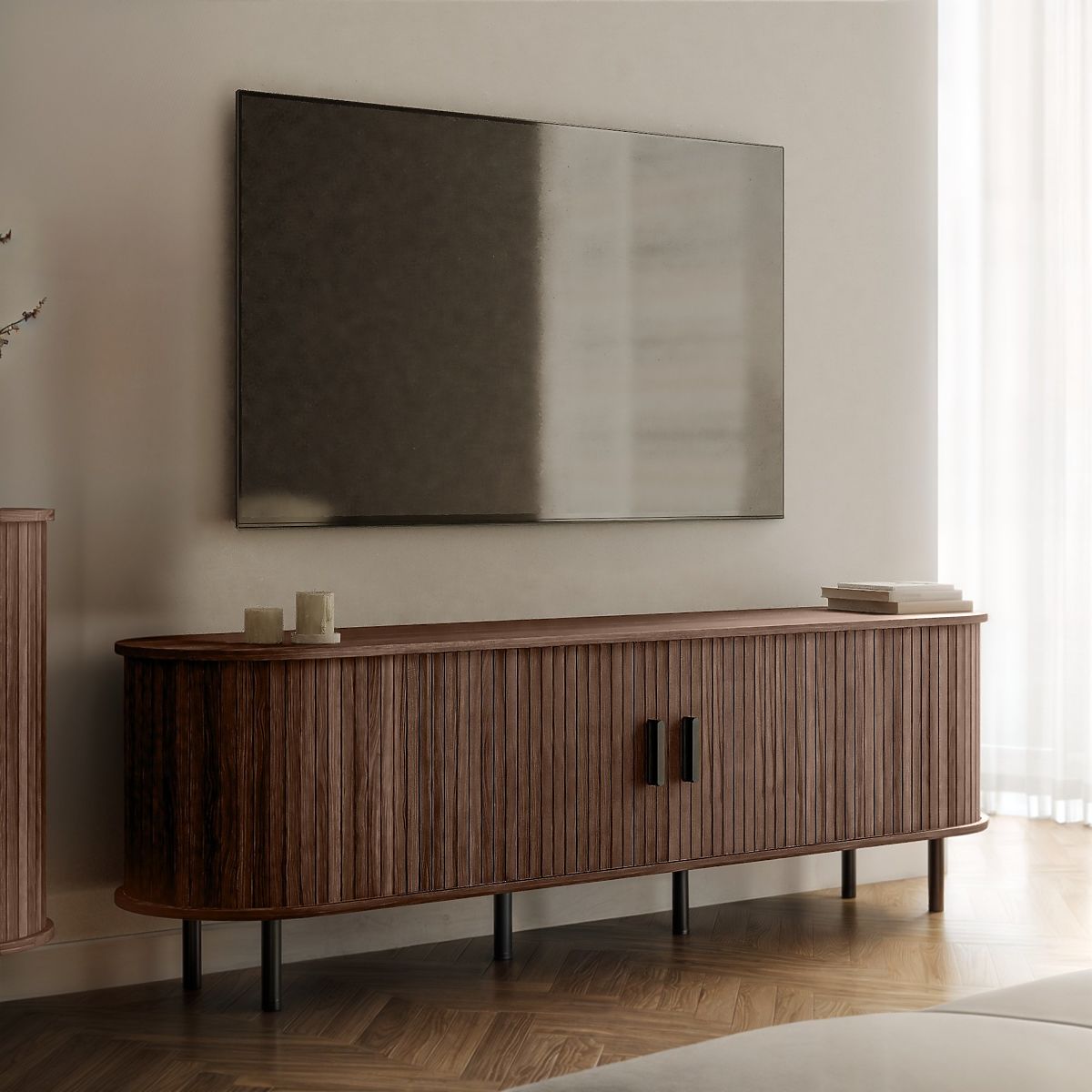 Lukafurniture.hu » Do itthon / élő szoba / Tv asztalok és komódok / Zárt Gliss TV szekrény, lekerekített, lamellás, sötét dió