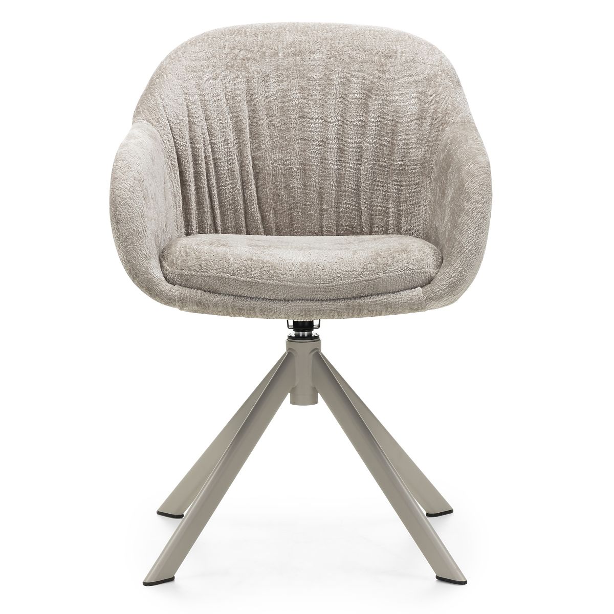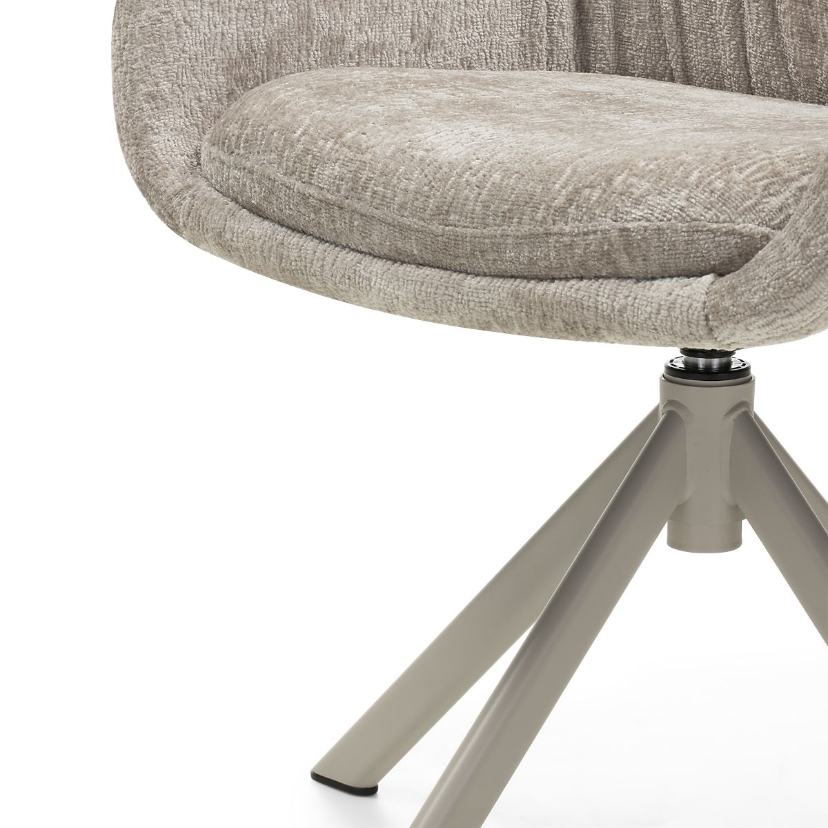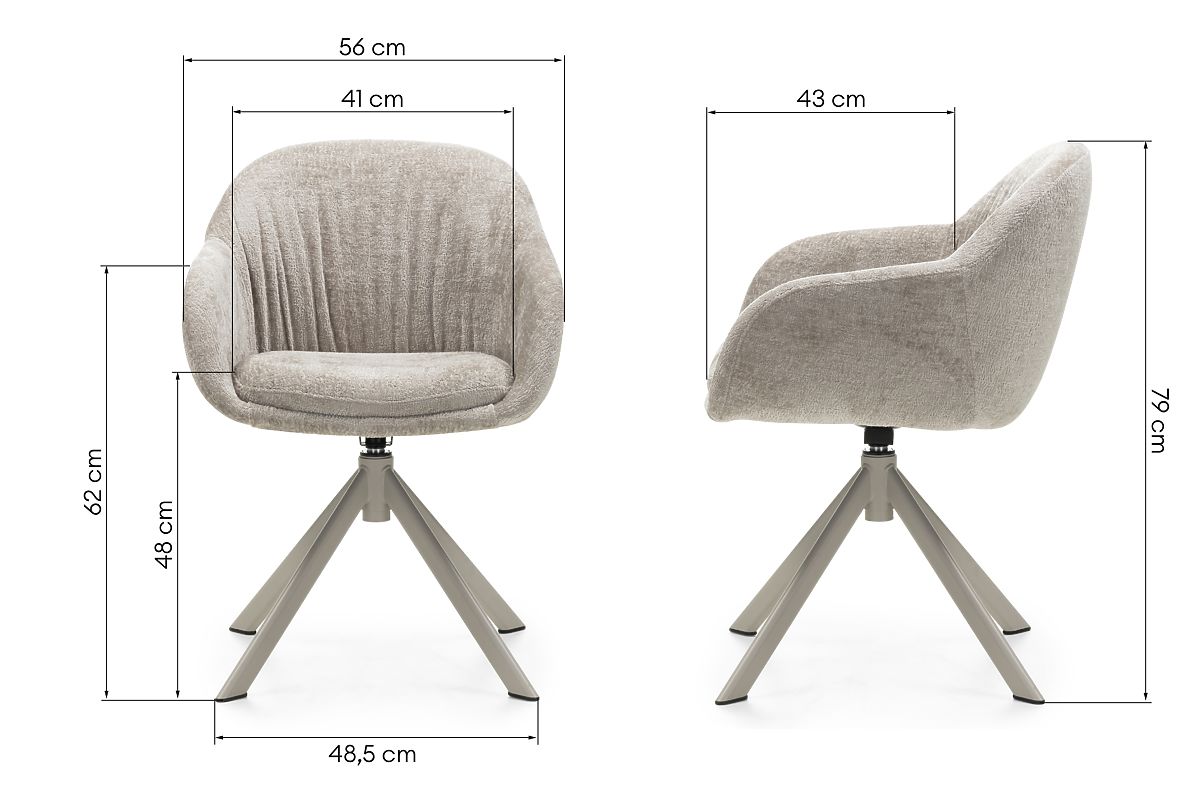 Merüljön el a kényelemben, amely az első érintéstől körülveszi. A KAIRO forgószék nemcsak stílusos bútordarab, hanem mindenekelőtt meghívás a napi pihenésre. A puha, kellemes tapintású anyag meleg, bézs árnyalatban otthonosságot és eleganciát kölcsönöz a belső térnek, míg a háttámla finom ráncolása finoman hangsúlyozza modern jellegét. A 360°-ban forgatható ülés szabadságot biztosít a mozgásban. Ideális otthoni irodához vagy pihenősarokhoz. A kényelmes kartámaszok stabilitás és ellazulás érzetét nyújtják, amikor csak szüksége van rá. A stabil szerkezet, amely bézs-szürke árnyalatú fém lábakon alapul, harmonikusan egészíti ki az egészet, így egy kivételes, időtlen dizájnnal rendelkező bútordarabot hozva létre. A KAIRO az esztétika és a funkcionalitás kombinációja, amely eleganciát ad belső terének, és egy kis időt csak Önnek.