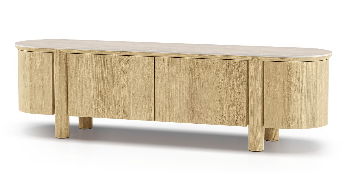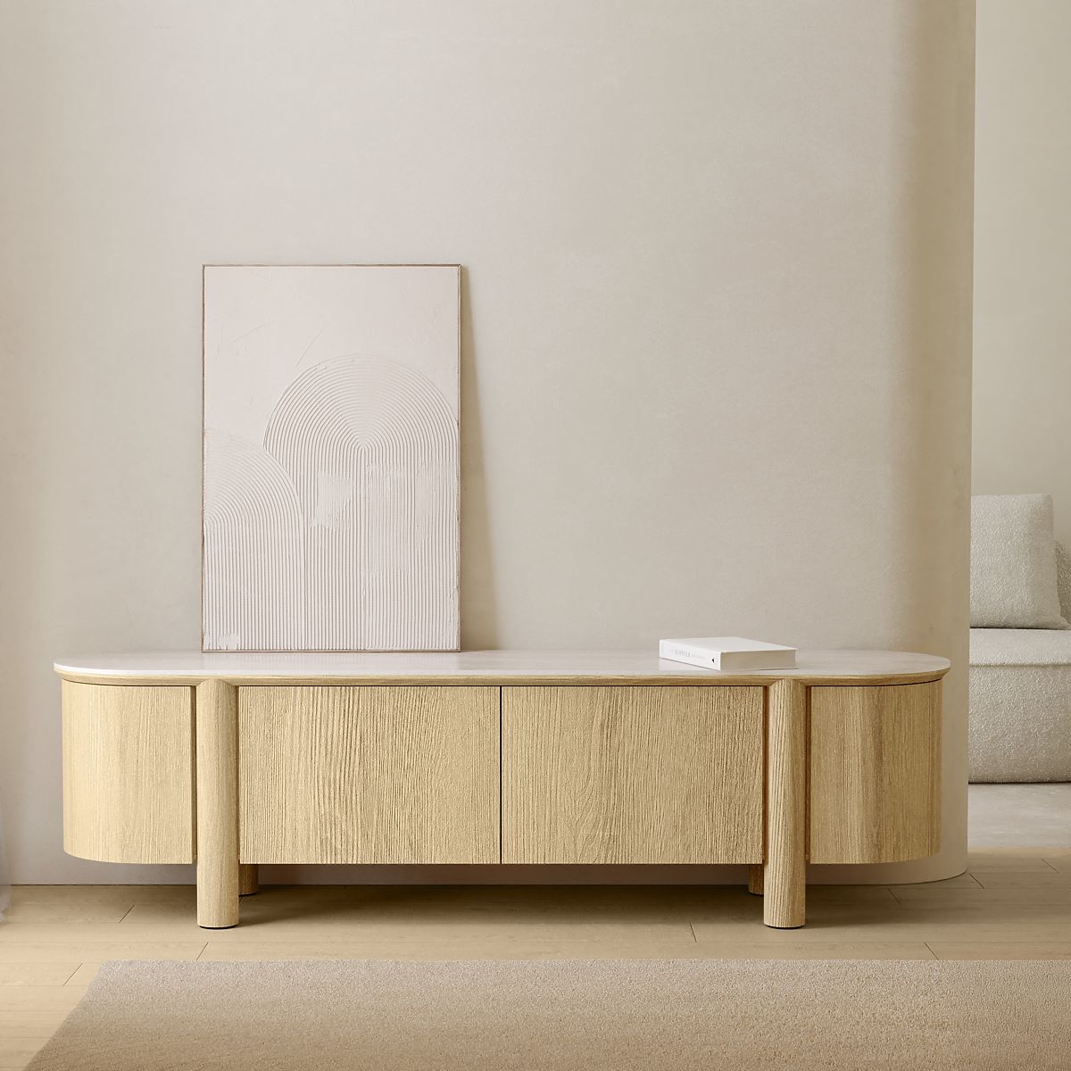Lukafurniture.hu » bútor / Tv asztalok és komódok / Segretto négyajtós, lekerekített TV-szekrény, természetes tölgy, travertin
