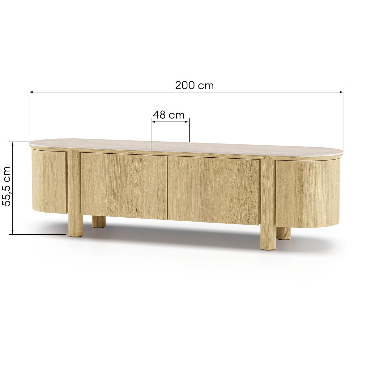 Lekerekített TV-szekrény természetes tölgy és travertin dekorral. .. többet