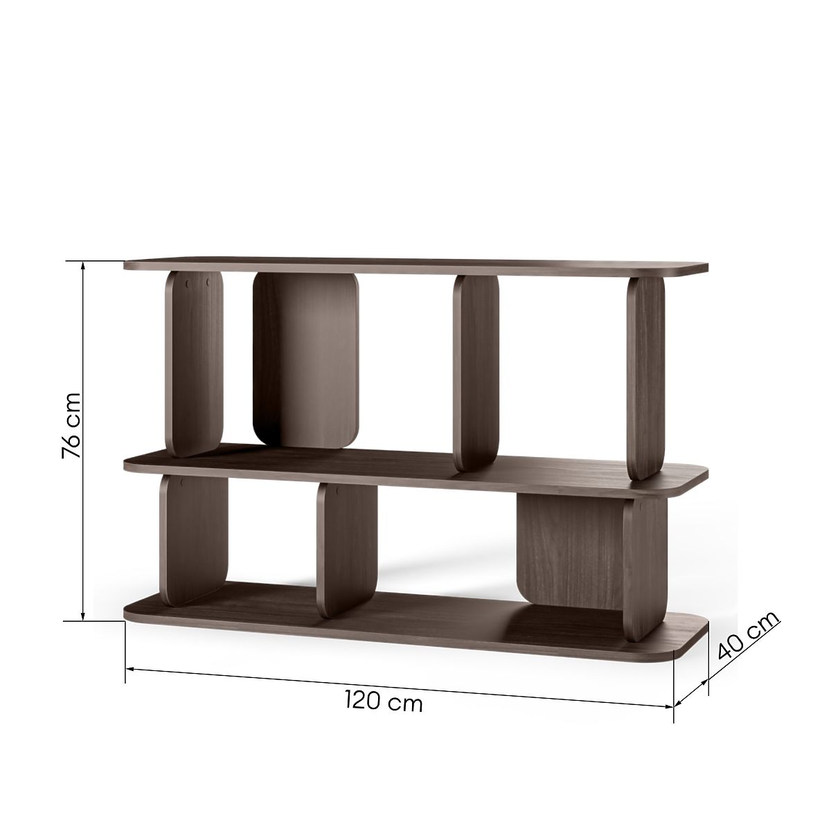 A Tulumo polc már első pillantásra elbűvöl. Modern formája az ívelt vonalakból és geometriai harmóniából ered, amelyek esztétikájukkal és kiegyensúlyozott kompozíciójukkal vonzzák a figyelmet. A háromszintű kialakítás függőlegesen változatosan elhelyezett rekeszekkel nemcsak érdekes vizuális hatást kelt, hanem stabilitást és praktikus használatot is biztosít. A Tulumo olyan polc, amelyet azok számára terveztek, akik értékelik a jó dizájnt és a rendet modern kivitelben. Minden polc helyet biztosít a kedvenc könyvek, dekorációk vagy mindennapi apróságok kiállítására - káosz nélkül, de stílusérzékkel. Kiválóan illik a nappaliba, otthoni irodába vagy hálószobába, ahol elegáns akcentust és vizuális könnyedséget hoz.
