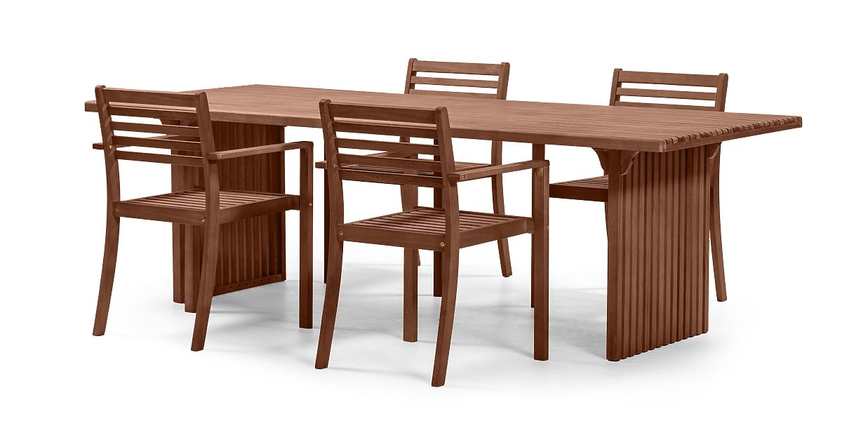 Álmodozik egy ideális helyről a nyári családi összejövetelekhez vagy baráti partikhoz a szabad ég alatt? A Familis ll kerti asztal pontosan az, amit keres! A 240 cm hosszú nagy felületének köszönhetően az asztal nagy csoportot képes befogadni, és kényelmes feltételeket biztosít a közös étkezéshez vagy a friss levegőn való pihenéshez. Ráadásul a Familis ll eredeti dizájnjával megváltoztatja a kültéri terület megjelenését, és egyedi varázst kölcsönöz neki. A szilárd eukaliptusz fából készült Familis ll nagyszerű választás azok számára, akik magas minőséget keresnek elérhető áron. Az eukaliptusz fa kivételes ellenállást biztosít a mechanikai sérülésekkel szemben, és a benne lévő természetes olajok védik az asztalt a nedvességtől, így sok éven át megőrzi egyedi megjelenését. Fontos hangsúlyozni, hogy az asztal gyártásához felhasznált fa FSC® tanúsítvánnyal rendelkezik – fenntartható fejlődési elvek szerint kezelt erdőkből származik. Így nemcsak a kényelembe fektet be, hanem bolygónk jövőjére is gondot fordít. Az asztal tökéletes állapotának hosszú távú megőrzése érdekében ajánlott télen száraz, szellőztetett helyen, fedél alatt tárolni, hogy megvédje az időjárás viszontagságaitól.