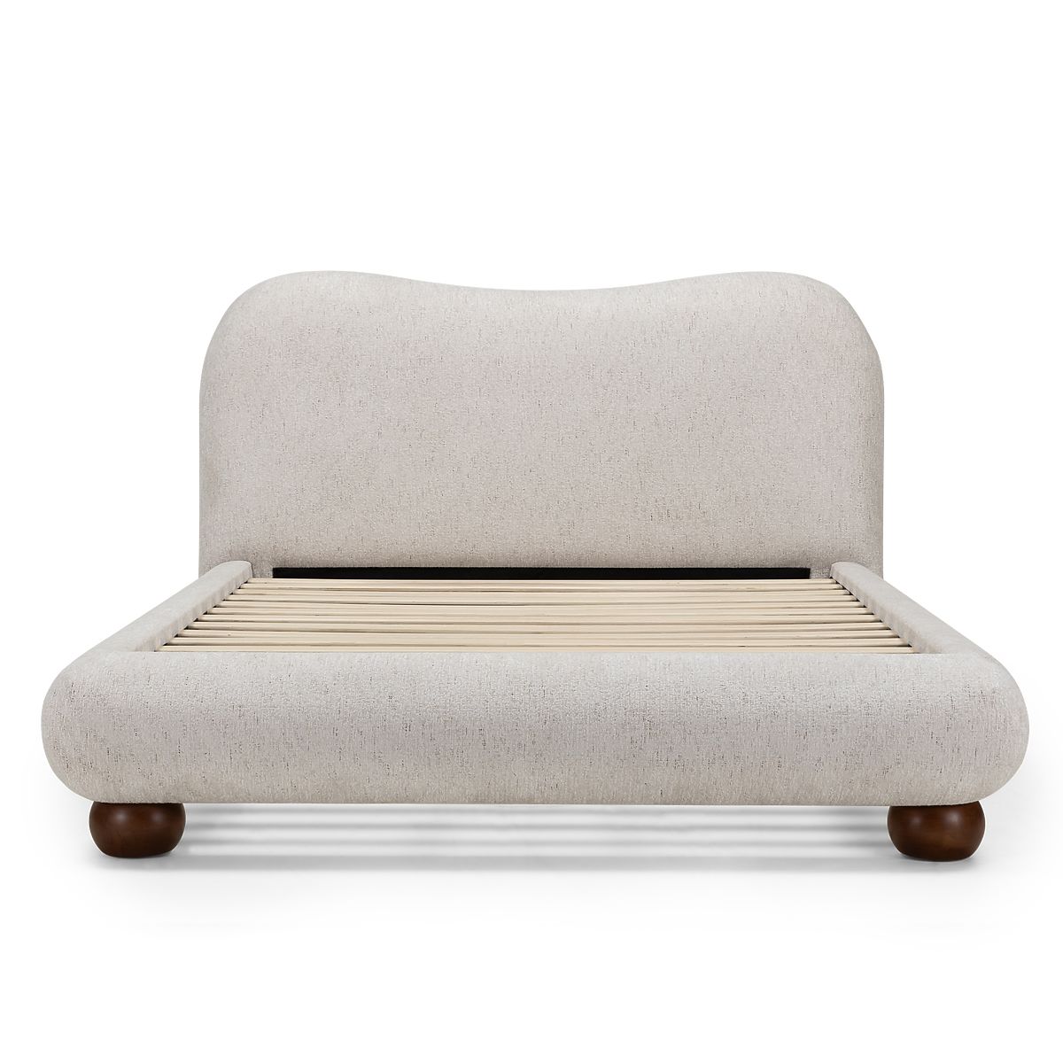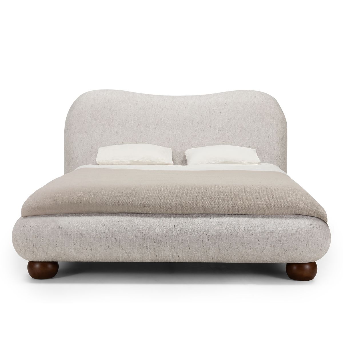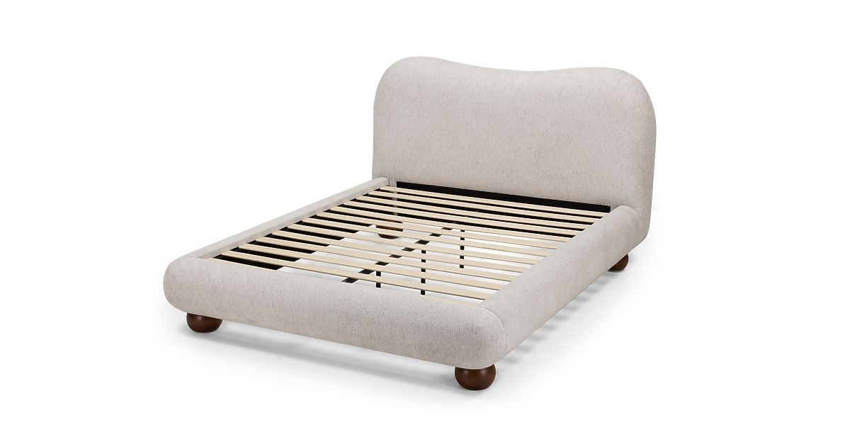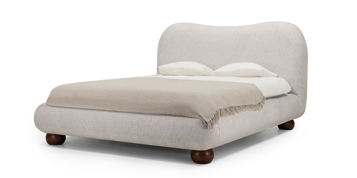 Kárpitozott Bowee ágy világos bézs színben, gömb lábakkal. .. többet