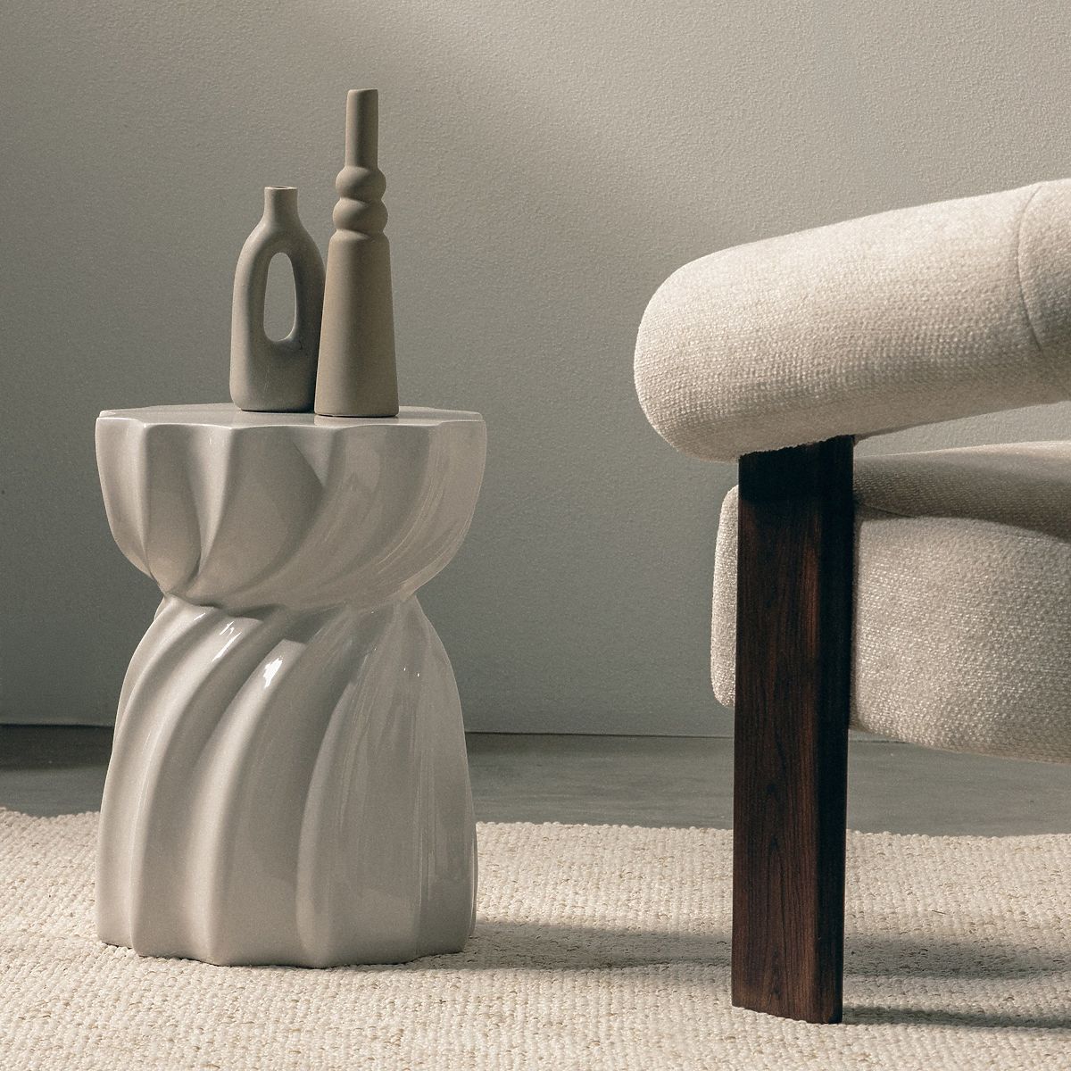 Szürke-bézs, fényes Bloom asztal hullámos struktúrával. .. többet