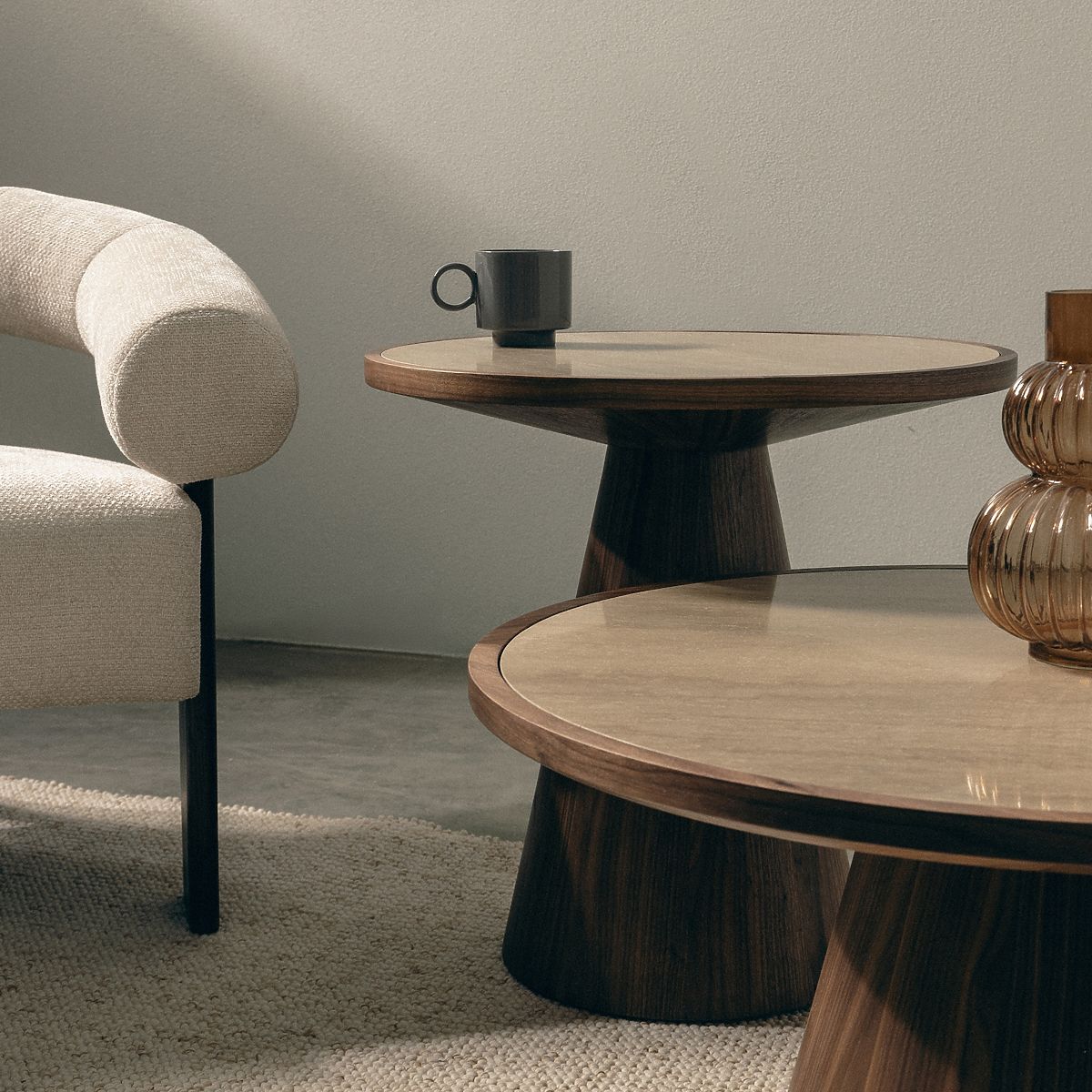 Lukafurniture.hu » Do itthon / élő szoba / konferencia asztalok / Kyoto oldalsó asztal 60 cm, kerek, travertin/dió